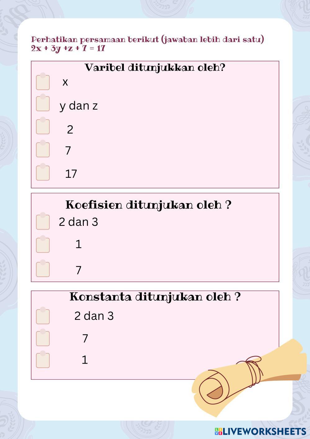 Sistem Persamaan Linear Tiga Variabel (SPLTV)