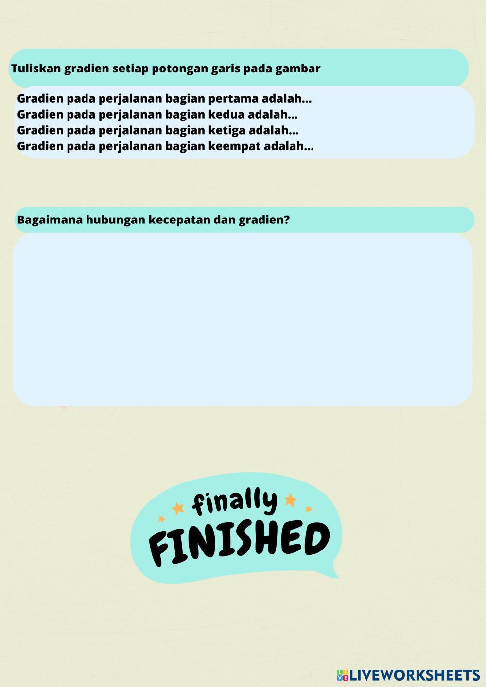 Created byRahmah Johar Matematika Gradien Garis Lurus Age 12-18 level: 8 Indonesian Author's Instructions My Google Classroom Courses × 0 classes selected (0 students total) Quick Access Select all classes (0 classes) All Classes Loading courses... Cancel Share Share to selected Course __COURSE_NAME__ __STUDENT_NAME__ (__STUDENT_EMAIL__) lkpd pert 3 Download Worksheet Validation Check my answers Emails my answers to my teacher Full name Group/level School subject Teacher's email or key code Close Submit Validating worksheet... (12) Your answers have been sent to your teacher. Good luck! OK We encountered an error submitting your answers. Please try again. OK Advertisement | Go Ad Free Created byRahmah Johar Matematika Gradien Garis Lurus Age 12-18 level: 8 Indonesian Author's Instructions
