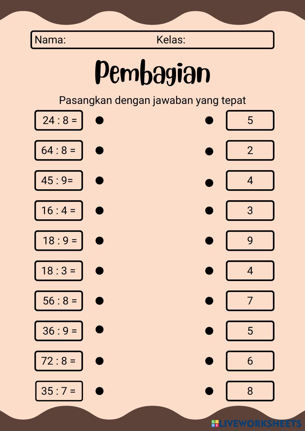 Created by shafaanggita Matematika Perkalian dan Pembagian Age 8-13 level: 3 Indonesian Author's Instructions My Google Classroom Courses × 0 classes selected (0 students total) Quick Access Select all classes (0 classes) All Classes Loading courses... Cancel Share Share to selected Course __COURSE_NAME__ __STUDENT_NAME__ (__STUDENT_EMAIL__) LKPD Perkalian Pembagian Download Worksheet Validation Check my answers Emails my answers to my teacher Full name Group/level School subject Teacher's email or key code Close Submit Validating worksheet... (12) Your answers have been sent to your teacher. Good luck! OK We encountered an error submitting your answers. Please try again. OK Advertisement | Go Ad Free Created by shafaanggita Matematika Perkalian dan Pembagian Age 8-13 level: 3 Indonesian Author's Instructions
