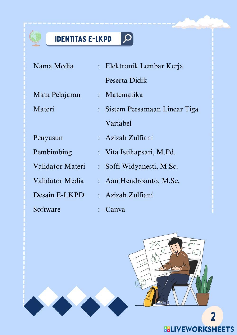 • Sistem Persamaan Linear Tiga Variabel (SPLTV)
