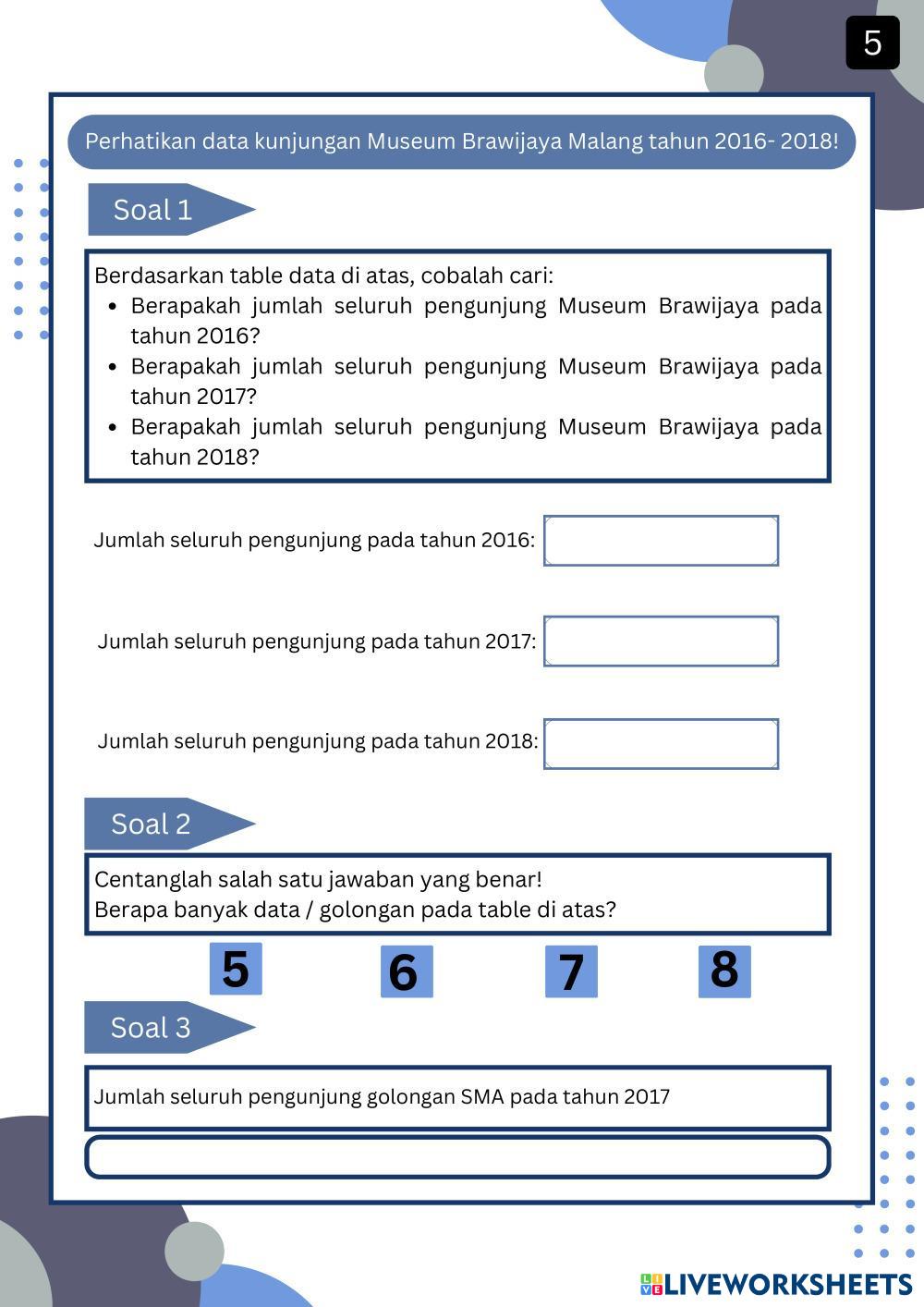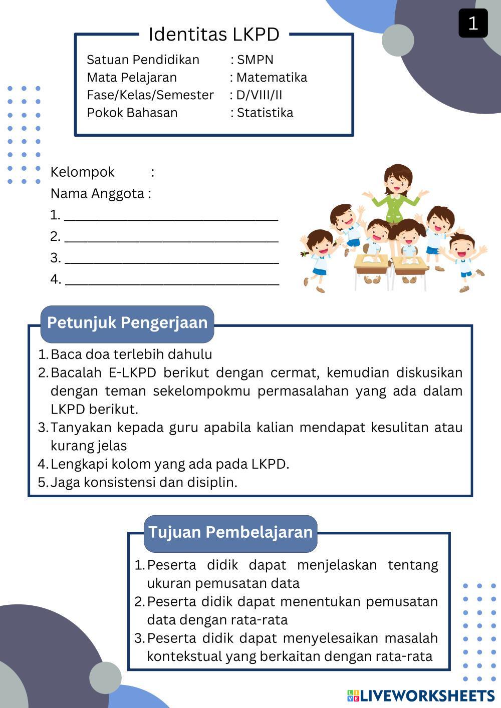 Created byElvira Nisa Matematika Mencari nilai rata- rata Age 11-17 level: 8 Indonesian Author's Instructions My Google Classroom Courses × 0 classes selected (0 students total) Quick Access Select all classes (0 classes) All Classes Loading courses... Cancel Share Share to selected Course __COURSE_NAME__ __STUDENT_NAME__ (__STUDENT_EMAIL__) Elvira Download Worksheet Validation Check my answers Emails my answers to my teacher Full name Group/level School subject Teacher's email or key code Close Submit Validating worksheet... (12) Your answers have been sent to your teacher. Good luck! OK We encountered an error submitting your answers. Please try again. OK Advertisement | Go Ad Free Created byElvira Nisa Matematika Mencari nilai rata- rata Age 11-17 level: 8 Indonesian Author's Instructions
