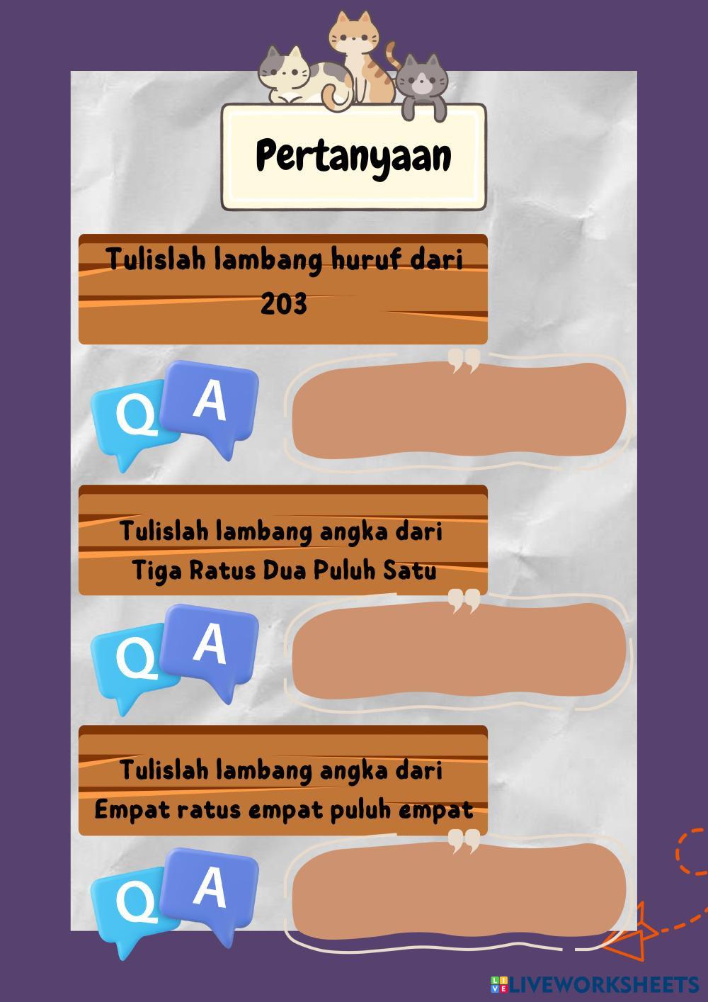 Created byRaveldio Matematika Berhitung Age 8-13 level: 3 Indonesian Author's Instructions My Google Classroom Courses × 0 classes selected (0 students total) Quick Access Select all classes (0 classes) All Classes Loading courses... Cancel Share Share to selected Course __COURSE_NAME__ __STUDENT_NAME__ (__STUDENT_EMAIL__) Lembar Kerja Peserta Didik 1 Kelas 3 Matematika Download Worksheet Validation Check my answers Emails my answers to my teacher Full name Group/level School subject Teacher's email or key code Close Submit Validating worksheet... (12) Your answers have been sent to your teacher. Good luck! OK We encountered an error submitting your answers. Please try again. OK Advertisement | Go Ad Free Created byRaveldio Matematika Berhitung Age 8-13 level: 3 Indonesian Author's Instructions