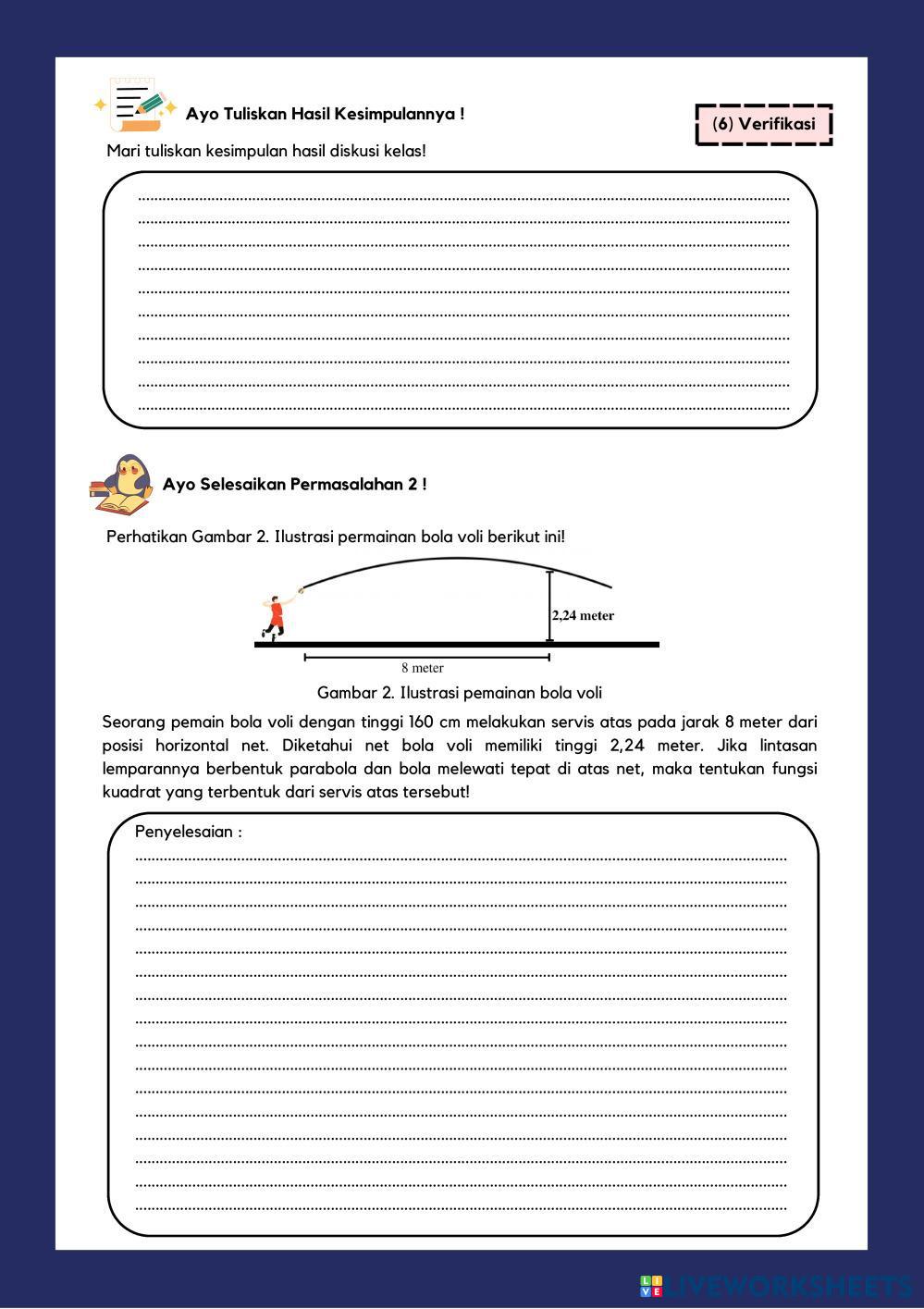 Created byKarina Cin Matematika Fungsi Kuadrat Age 13+ level: 10 Indonesian Author's Instructions My Google Classroom Courses × 0 classes selected (0 students total) Quick Access Select all classes (0 classes) All Classes Loading courses... Cancel Share Share to selected Course __COURSE_NAME__ __STUDENT_NAME__ (__STUDENT_EMAIL__) LKS FUNGSI KUADRAT Download Worksheet Validation Check my answers Emails my answers to my teacher Full name Group/level School subject Teacher's email or key code Close Submit Validating worksheet... (12) Your answers have been sent to your teacher. Good luck! OK We encountered an error submitting your answers. Please try again. OK Advertisement | Go Ad Free Created byKarina Cin Matematika Fungsi Kuadrat Age 13+ level: 10 Indonesian Author's Instructions