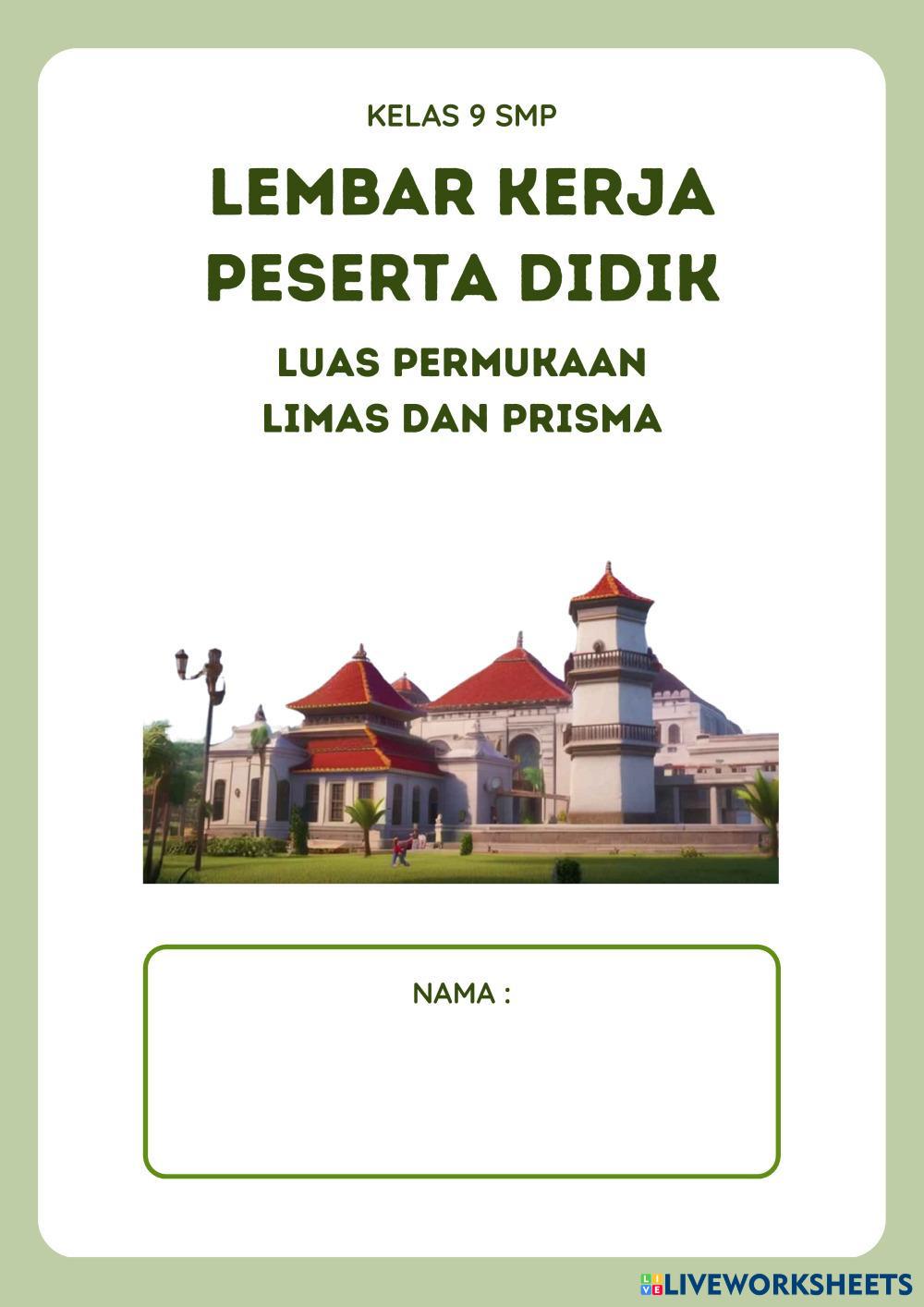 Created by kamilatunnadia Matematika Luas permukaan Age 10-18 level: 9 SMP Indonesian Author's Instructions My Google Classroom Courses × 0 classes selected (0 students total) Quick Access Select all classes (0 classes) All Classes Loading courses... Cancel Share Share to selected Course __COURSE_NAME__ __STUDENT_NAME__ (__STUDENT_EMAIL__) Luas Permukaan Limas dan Prisma Download Worksheet Validation Check my answers Emails my answers to my teacher Full name Group/level School subject Teacher's email or key code Close Submit Validating worksheet... (12) Your answers have been sent to your teacher. Good luck! OK We encountered an error submitting your answers. Please try again. OK Advertisement | Go Ad Free Created by kamilatunnadia Matematika Luas permukaan Age 10-18 level: 9 SMP Indonesian Author's Instructions