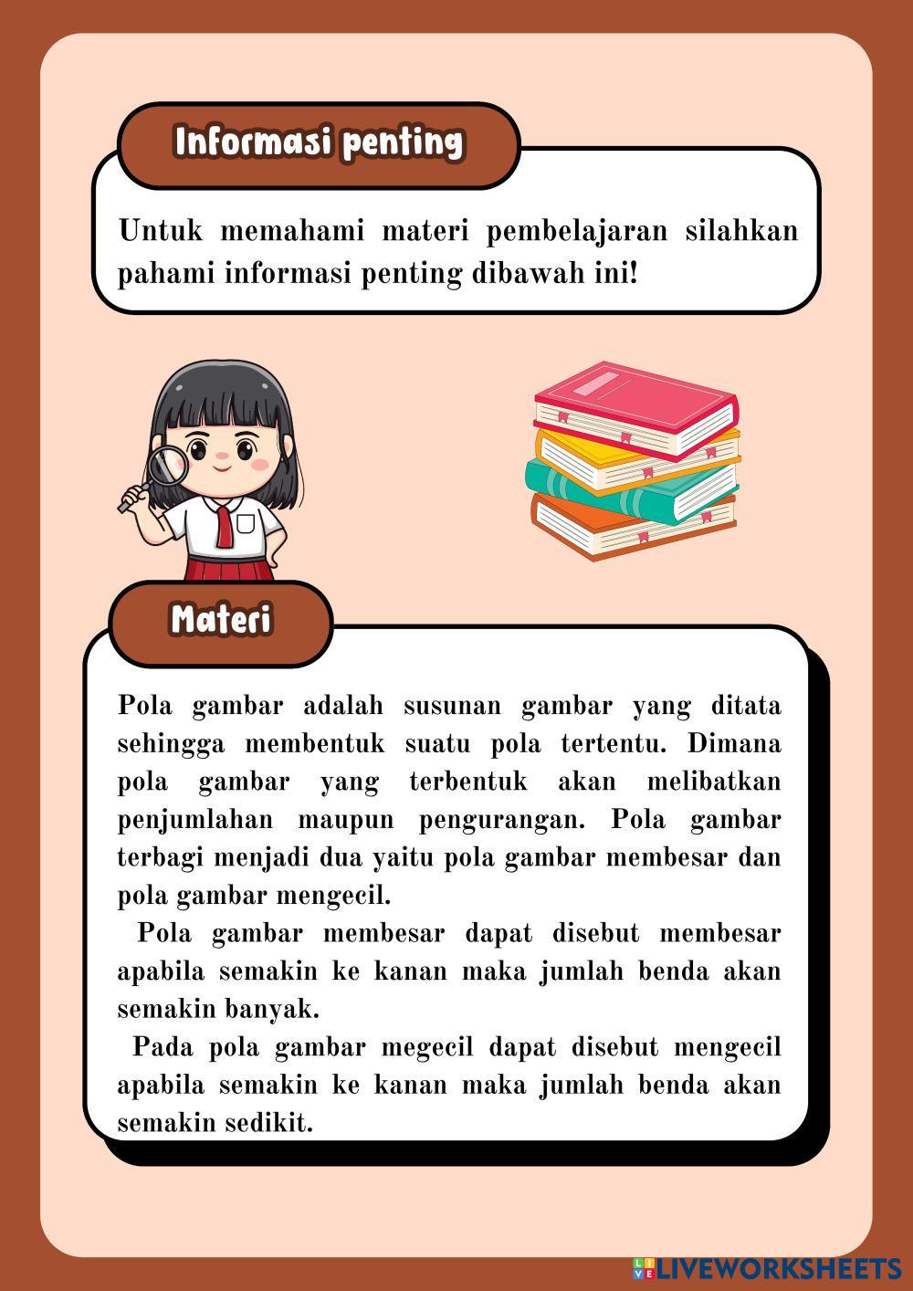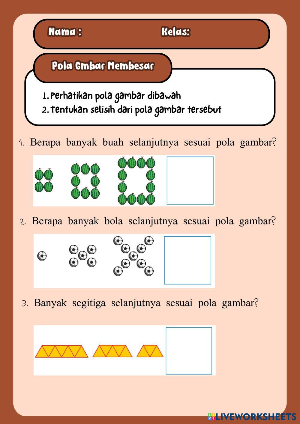 Created bySRI AINI Matematika Pola Gambar Age 10+ level: 4 Indonesian Author's Instructions My Google Classroom Courses × 0 classes selected (0 students total) Quick Access Select all classes (0 classes) All Classes Loading courses... Cancel Share Share to selected Course __COURSE_NAME__ __STUDENT_NAME__ (__STUDENT_EMAIL__) Pola Gambar Download Worksheet Validation Check my answers Emails my answers to my teacher Full name Group/level School subject Teacher's email or key code Close Submit Validating worksheet... (12) Your answers have been sent to your teacher. Good luck! OK We encountered an error submitting your answers. Please try again. OK Advertisement | Go Ad Free Created bySRI AINI Matematika Pola Gambar Age 10+ level: 4 Indonesian Author's Instructions