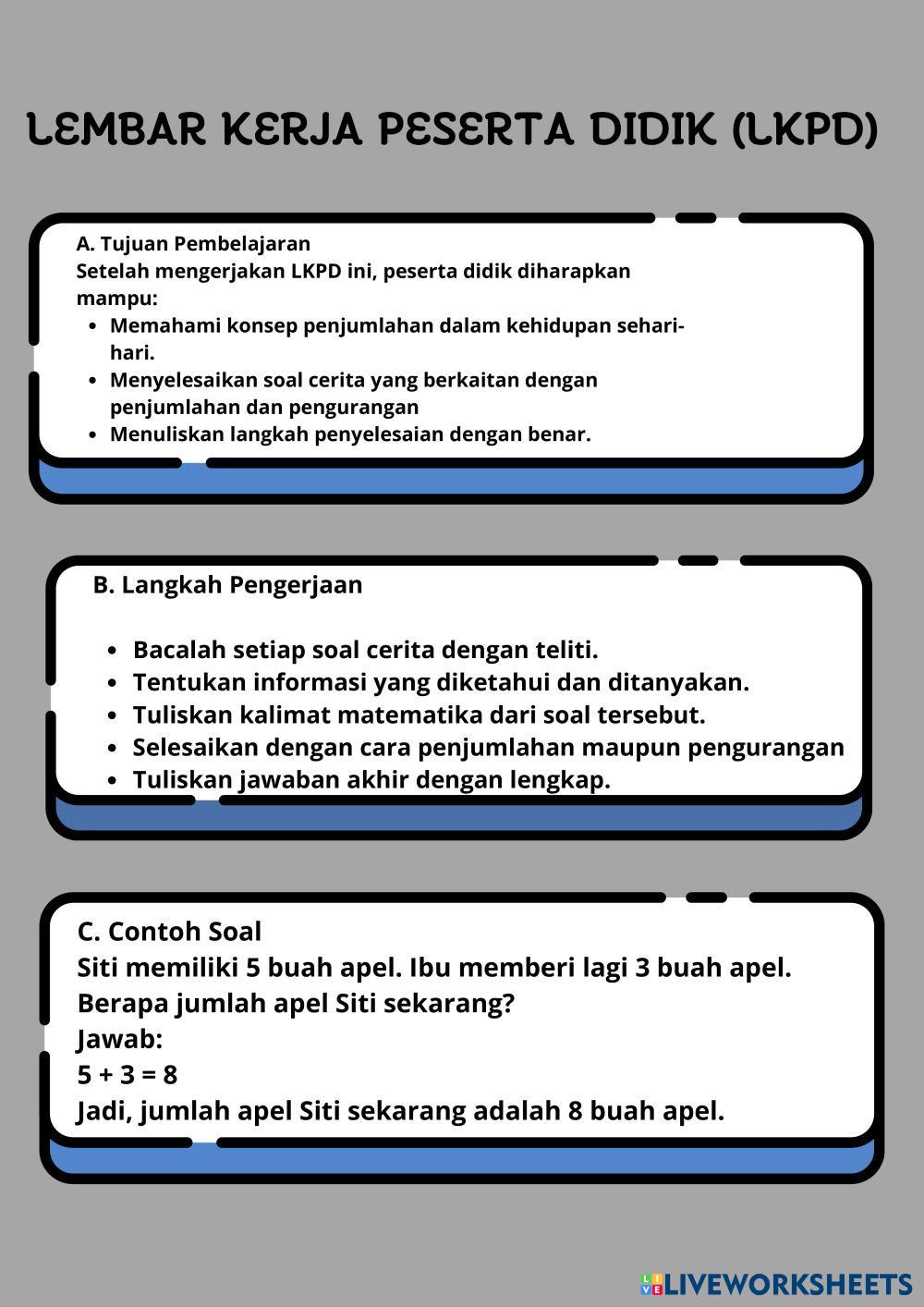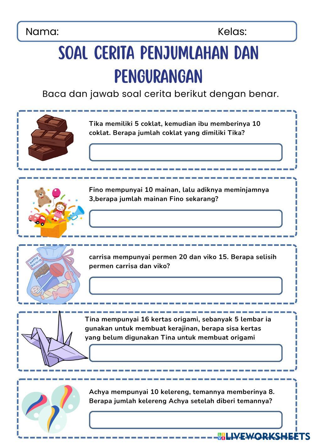 Created byinas hexana Math Elementary 1st grade Addition and Subtraction Indonesian Author's Instructions kerjakan dengan baik dan benar My Google Classroom Courses × 0 classes selected (0 students total) Quick Access Select all classes (0 classes) All Classes Loading courses... Cancel Share Share to selected Course __COURSE_NAME__ __STUDENT_NAME__ (__STUDENT_EMAIL__) penjmlahan dan pengurangan Download Worksheet Validation Check my answers Emails my answers to my teacher Full name Group/level School subject Teacher's email or key code Close Submit Validating worksheet... (12) Your answers have been sent to your teacher. Good luck! OK We encountered an error submitting your answers. Please try again. OK Advertisement | Go Ad Free Created byinas hexana Math Elementary 1st grade Addition and Subtraction Indonesian Author's Instructions kerjakan dengan baik dan benar Explore Worksheets Решение задач Math 1st grade Решение задач Addition and Subtraction - Math Решение задач Phiếu bài tập Toán tuần 27 Math 1st grade Phiếu bài tập Toán tuần 27 Addition and Subtraction - Math Chúc các bạn học tốt! latihan soal Math 1st grade latihan soal Addition and Subtraction - Math kerjakan latihan soal Math 1st grade latihan soal Addition and Subtraction - Math kerjakan