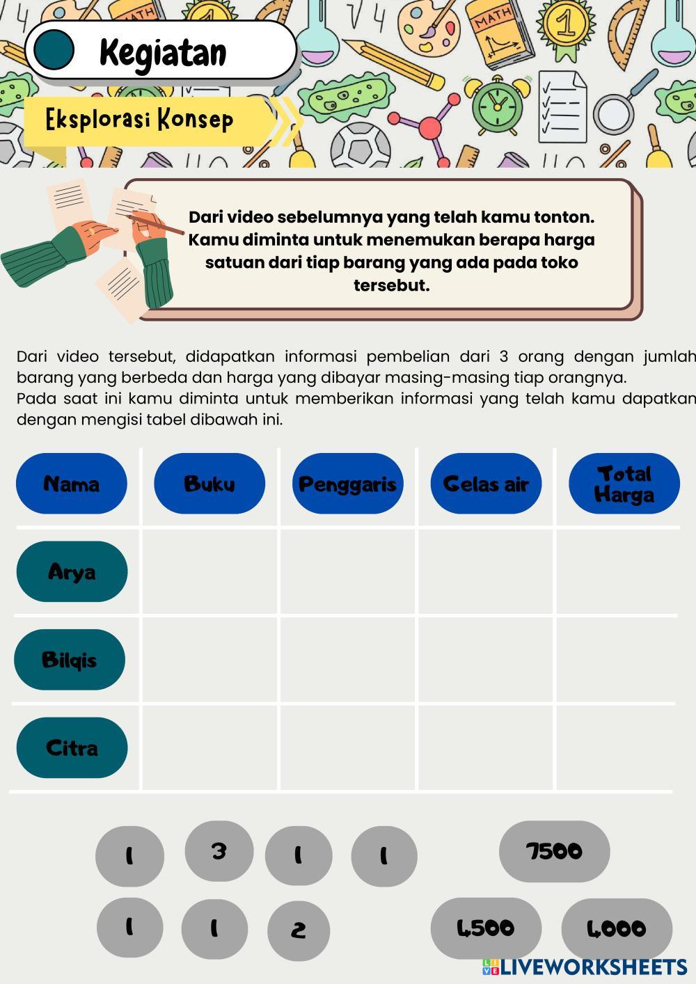 Explore Worksheets
