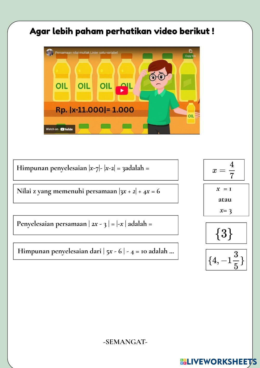 Created byRindiani Math High School 10th grade Algebra Indonesian Author's Instructions Kerjakan dengan baik dan benar ! My Google Classroom Courses × 0 classes selected (0 students total) Quick Access Select all classes (0 classes) All Classes Loading courses... Cancel Share Share to selected Course __COURSE_NAME__ __STUDENT_NAME__ (__STUDENT_EMAIL__) Rindiani Download Worksheet Validation Check my answers Emails my answers to my teacher Full name Group/level School subject Teacher's email or key code Close Submit Validating worksheet... (12) Your answers have been sent to your teacher. Good luck! OK We encountered an error submitting your answers. Please try again. OK Advertisement | Go Ad Free Created byRindiani Math High School 10th grade Algebra Indonesian Author's Instructions Kerjakan dengan baik dan benar ! Explore Worksheets ورقة عمل اشارة الاقتران Math 10th grade ورقة عمل اشارة الاقتران Algebra - Math اجب E-LKPD 3 SPLTV Math 10th grade E-LKPD 3 SPLTV Algebra - Math MATERI SPLTV E-LKPD 2 SPLTV Math 10th grade E-LKPD 2 SPLTV Algebra - Math E-LKPD 2 MATERI SPLTV Lembar Kerja 1 Math 10th grade Lembar Kerja 1 Algebra - Math Ikuti sesuai intruksi yang sudah ada di LKPD