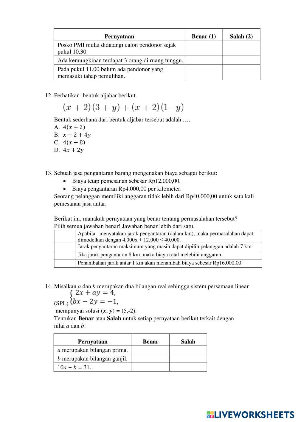 Pilihlah jawaban A, B, C, dan D yang kamu anggap paling benar !