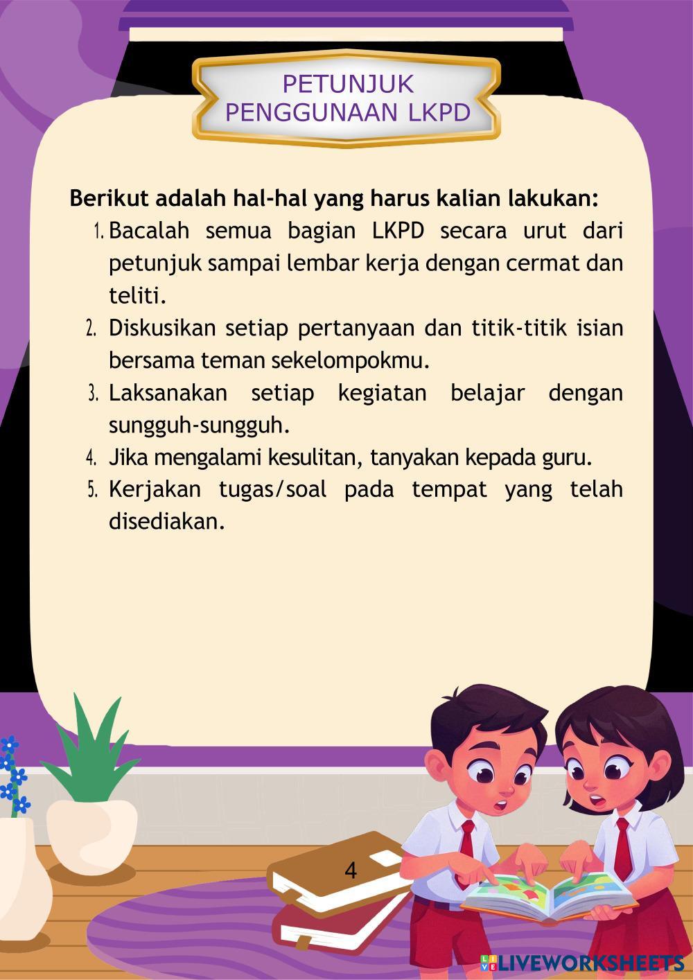 - Bacalah semua bagian LKPD secara urut dari petunjuk sampai lembar kerja dengan cermat dan teliti.