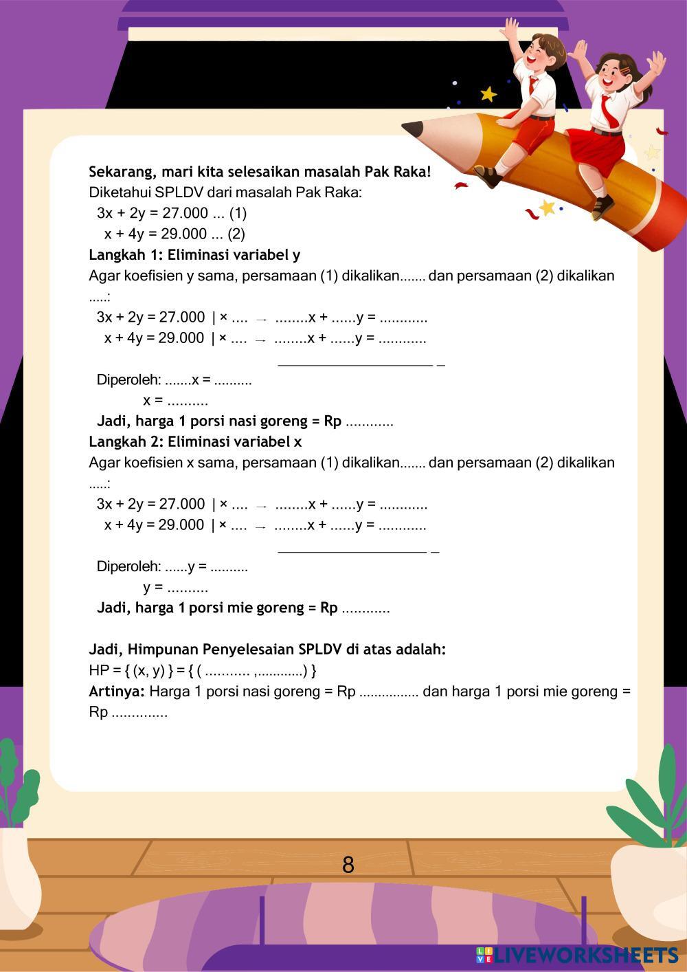 LKPD Sistem Persamaan Linear Dua Variabel