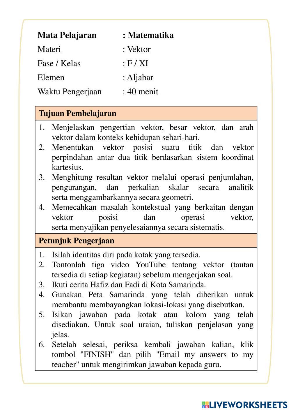2.Tontonlah tiga video YouTube tentang vektor (tautan tersedia di setiap kegiatan) sebelum mengerjakan soal.