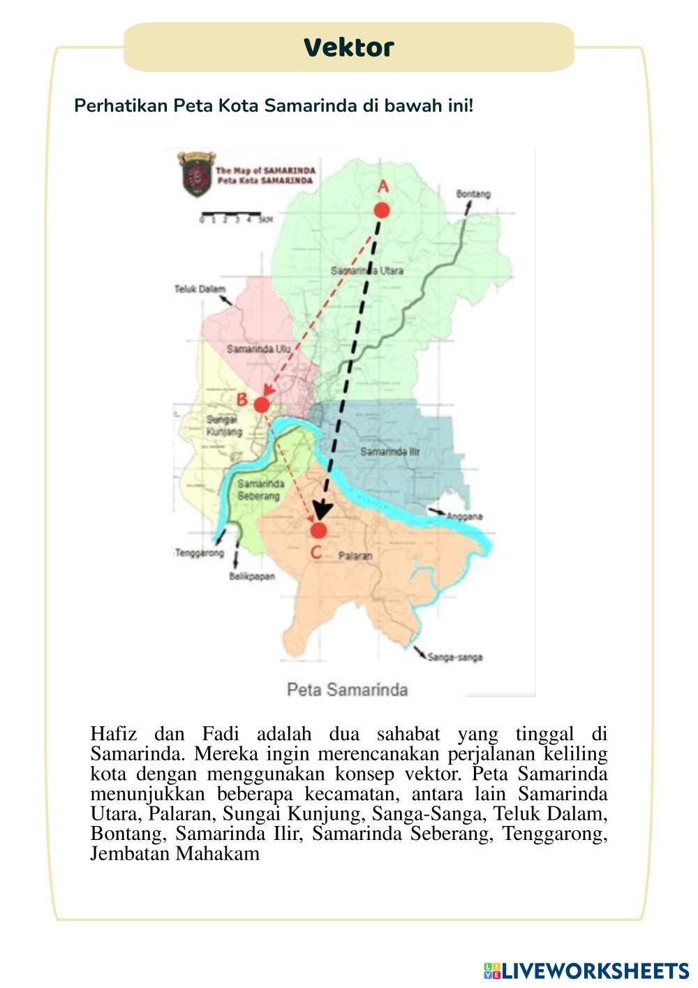 4.Gunakan Peta Samarinda yang telah diberikan untuk membantu membayangkan lokasi-lokasi yang disebutkan.
