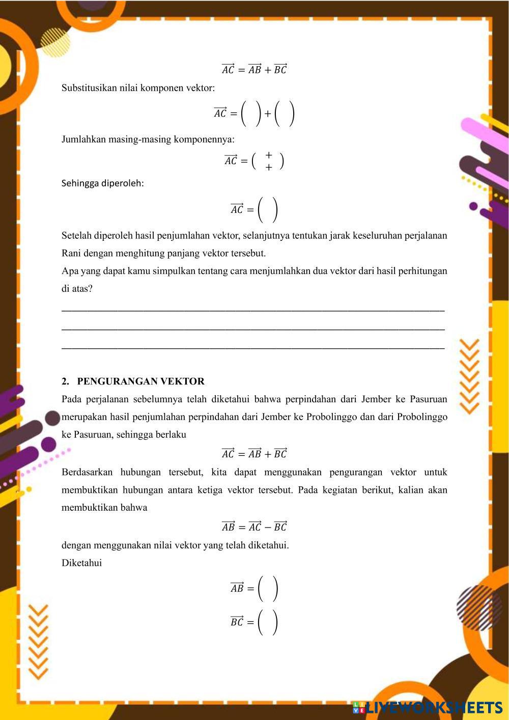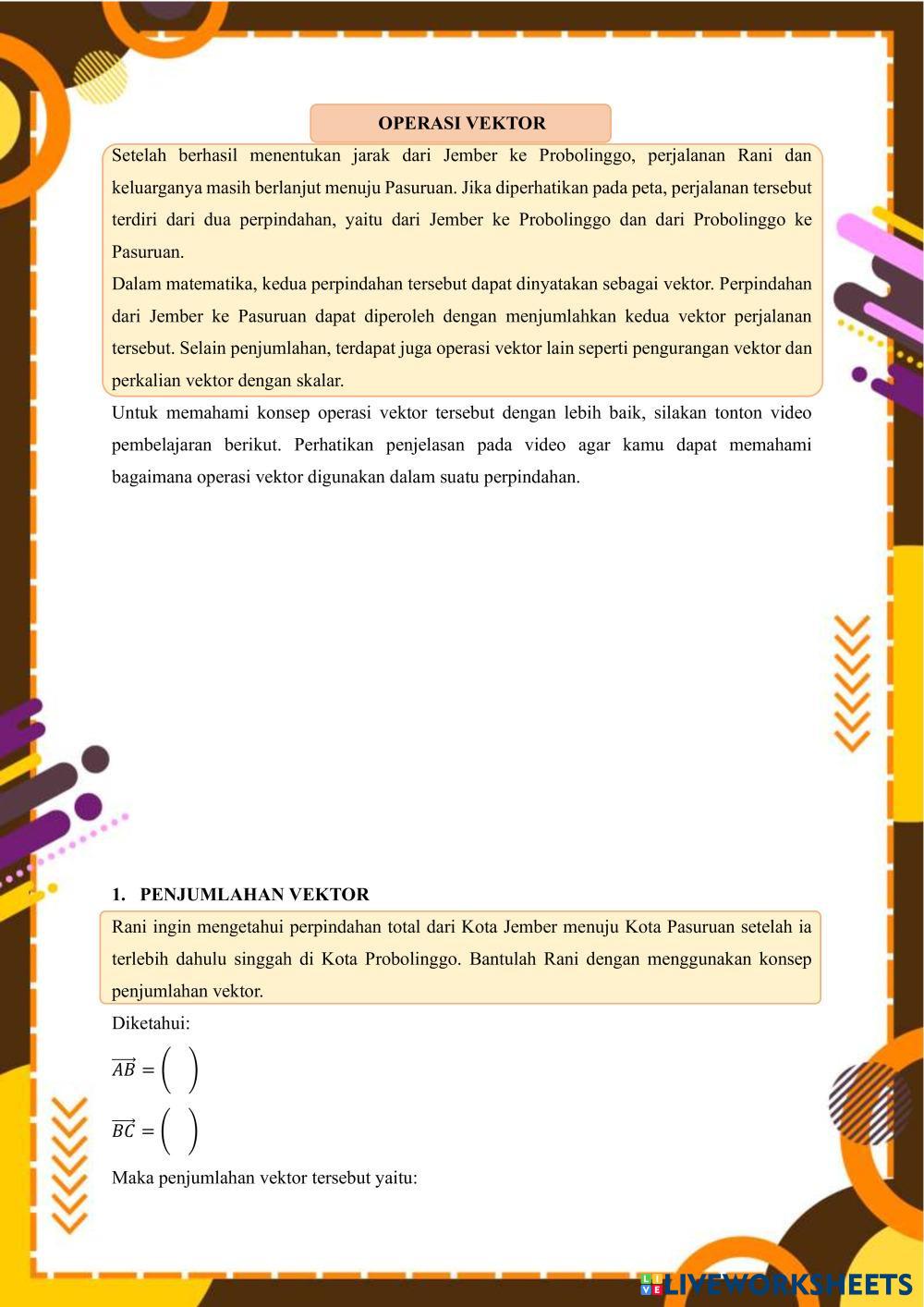 Created by nabilazuhra Math High School 11th grade Algebra Indonesian Author's Instructions Kerjakan secara mandiri!! My Google Classroom Courses × 0 classes selected (0 students total) Quick Access Select all classes (0 classes) All Classes Loading courses... Cancel Share Share to selected Course __COURSE_NAME__ __STUDENT_NAME__ (__STUDENT_EMAIL__) LKPD VEKTOR DAN OPERASINYA Download Worksheet Validation Check my answers Emails my answers to my teacher Full name Group/level School subject Teacher's email or key code Close Submit Validating worksheet... (12) Your answers have been sent to your teacher. Good luck! OK We encountered an error submitting your answers. Please try again. OK Advertisement | Go Ad Free Created by nabilazuhra Math High School 11th grade Algebra Indonesian Author's Instructions Kerjakan secara mandiri!! Explore Worksheets factor comun Math 11th grade factor comun Algebra - Math realizar los siguientes ejjercicios FUNCIONES Math 11th grade FUNCIONES Algebra - Math COMPLETAR LOS ENUNCIADOS FUNCIONES Math 11th grade FUNCIONES Algebra - Math COMPLETAR LOS ENUNCIADOS QUIZ ANALISIS GRAFIK FUNGSI NILAI MUTLAK Math 11th grade QUIZ ANALISIS GRAFIK FUNGSI NILAI MUTLAK Algebra - Math -