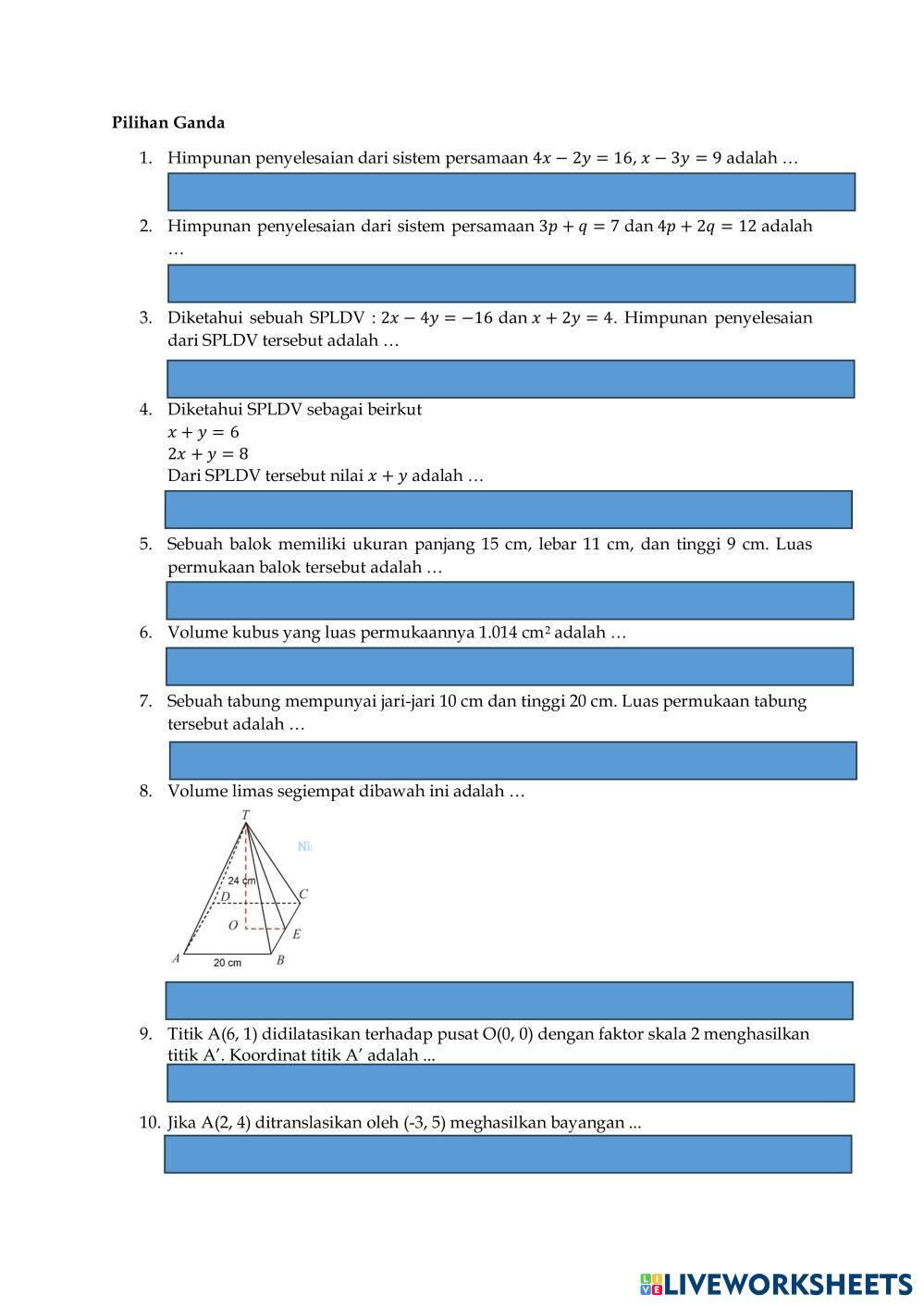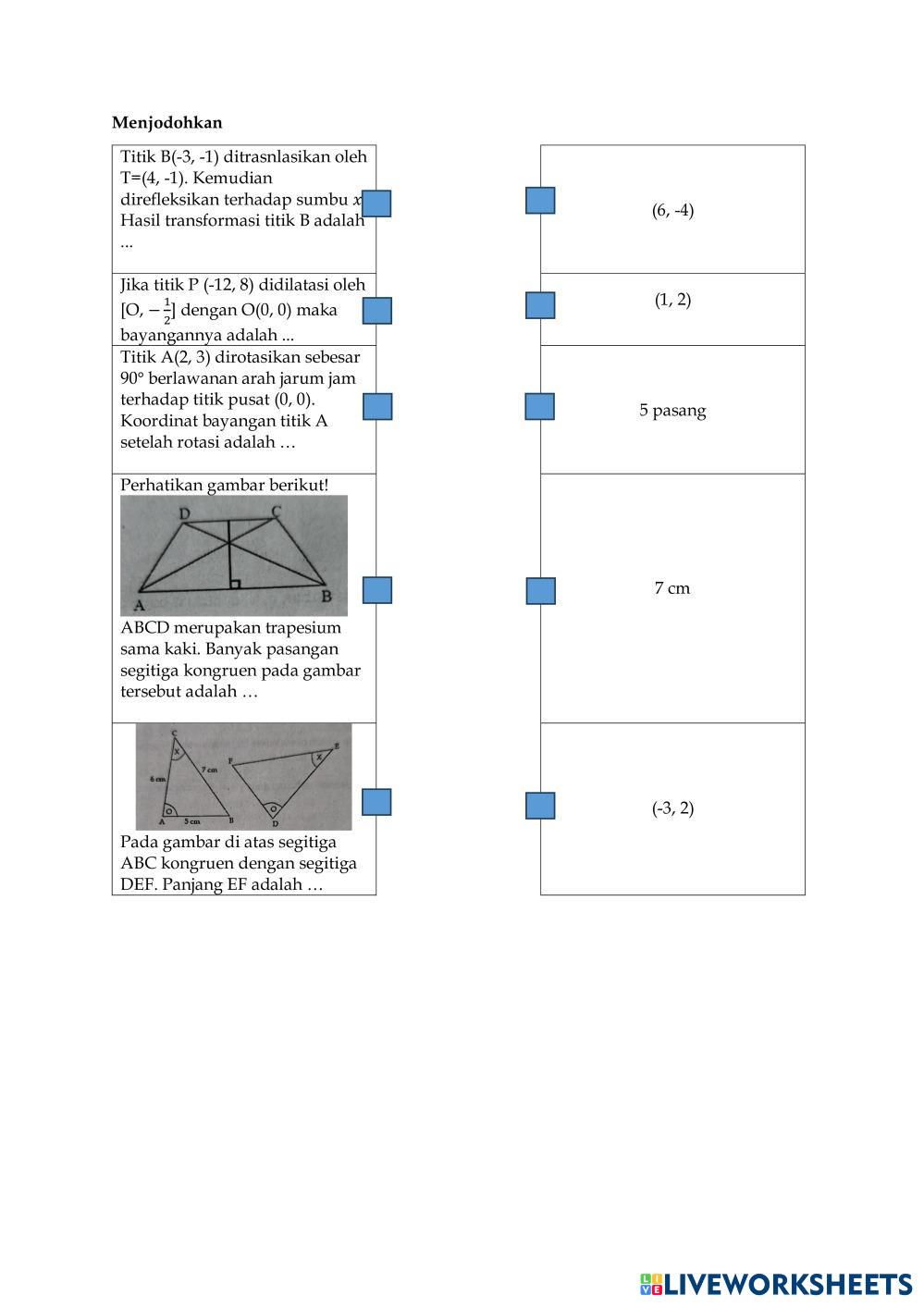 SPLDV, Bangun Ruang, Transformasi Geometri, Kekongruenan