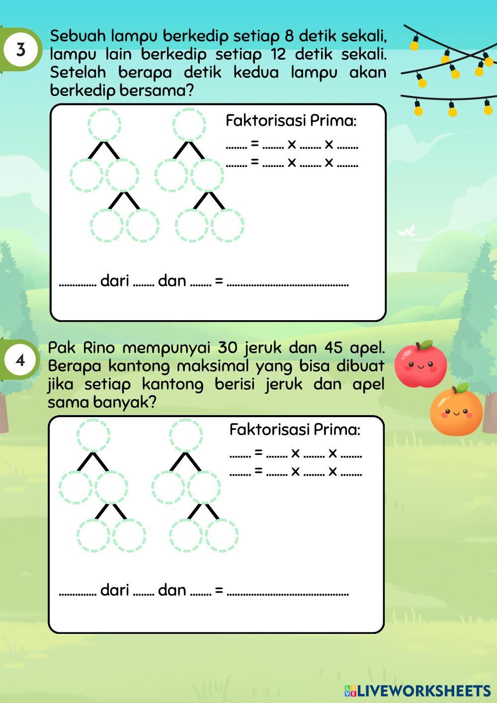 Kerjakan E-LKPD bersama dengan teman kelompokmu! Jawablah soal cerita berikut dengan menggunakan kelipatan atau faktor.