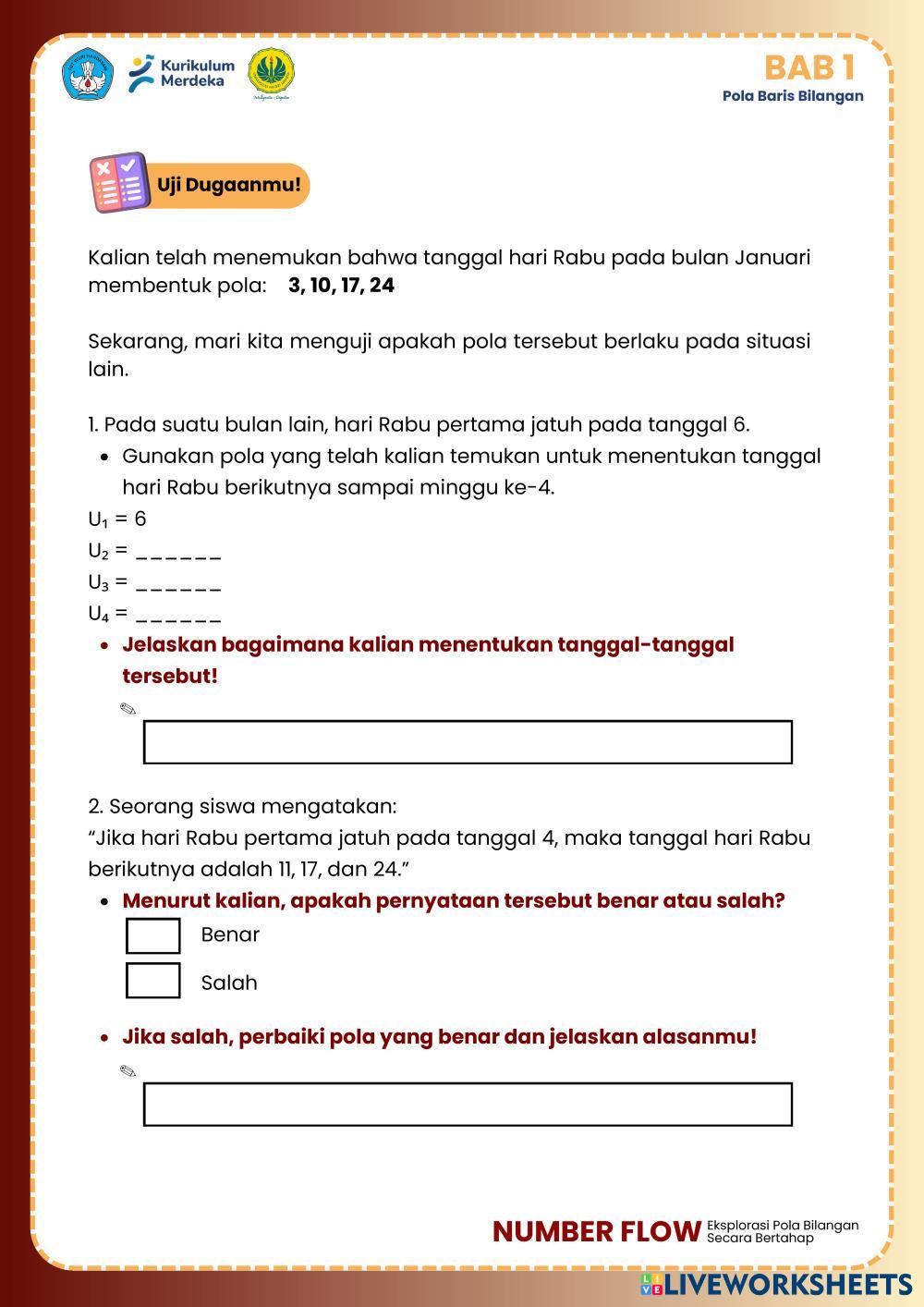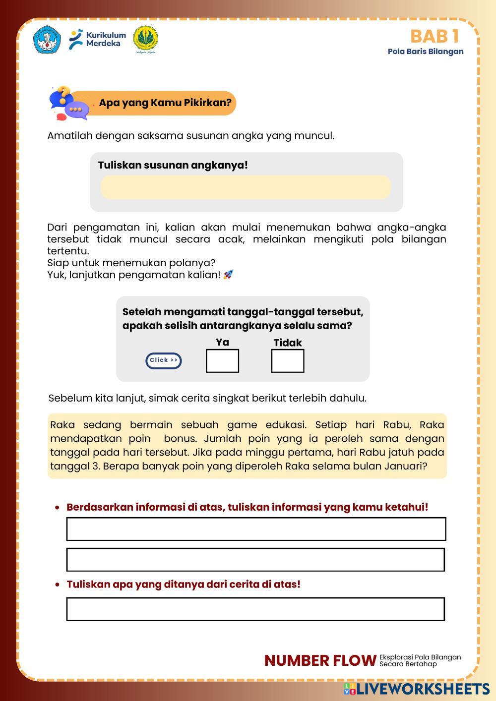 Created byLatifa Meilaningrum Math Middle School 8th grade Algebra Indonesian Author's Instructions Kerjakan secara bertahap dan teliti! My Google Classroom Courses × 0 classes selected (0 students total) Quick Access Select all classes (0 classes) All Classes Loading courses... Cancel Share Share to selected Course __COURSE_NAME__ __STUDENT_NAME__ (__STUDENT_EMAIL__) LKPD part 1 Download Worksheet Validation Check my answers Emails my answers to my teacher Full name Group/level School subject Teacher's email or key code Close Submit Validating worksheet... (12) Your answers have been sent to your teacher. Good luck! OK We encountered an error submitting your answers. Please try again. OK Advertisement | Go Ad Free Created byLatifa Meilaningrum Math Middle School 8th grade Algebra Indonesian Author's Instructions Kerjakan secara bertahap dan teliti! Explore Worksheets Bangun Ruang Math 8th grade Bangun Ruang Algebra - Math LKPD BANGUN RUANG LUYỆN TẬP Bài 2 Math 8th grade LUYỆN TẬP Bài 2 Algebra - Math Phiếu này dùng để củng cố - định lương kiến thức đã lĩnh hội của HS sau bài học Домашнє завдання 8 клас Math 8th grade Домашнє завдання 8 клас Algebra - Math Домашнє завдання 8 клас Домашнє завдання 8 клас Math 8th grade Домашнє завдання 8 клас Algebra - Math Домашнє завдання 8 клас