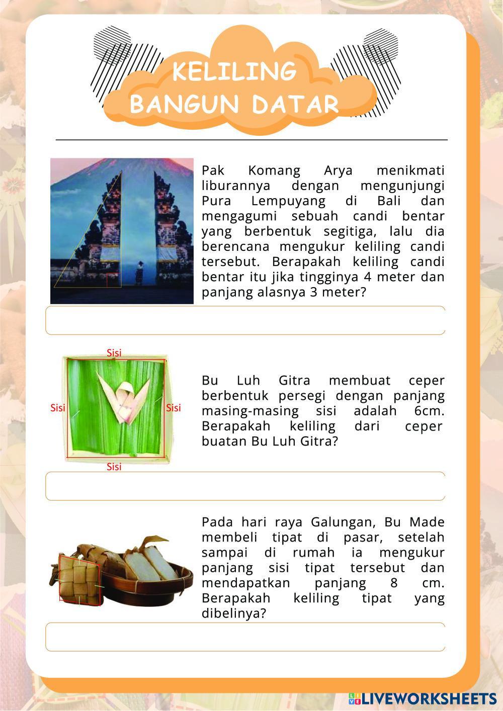 Materi Mengenal Bangun Datar pada kelas IV Sekolah Dasar disajikan untuk membantu peserta didik memahami konsep geometri dasar melalui pendekatan kontekstual berbasis etnomatematika dalam media pembelajaran GEMPAR.