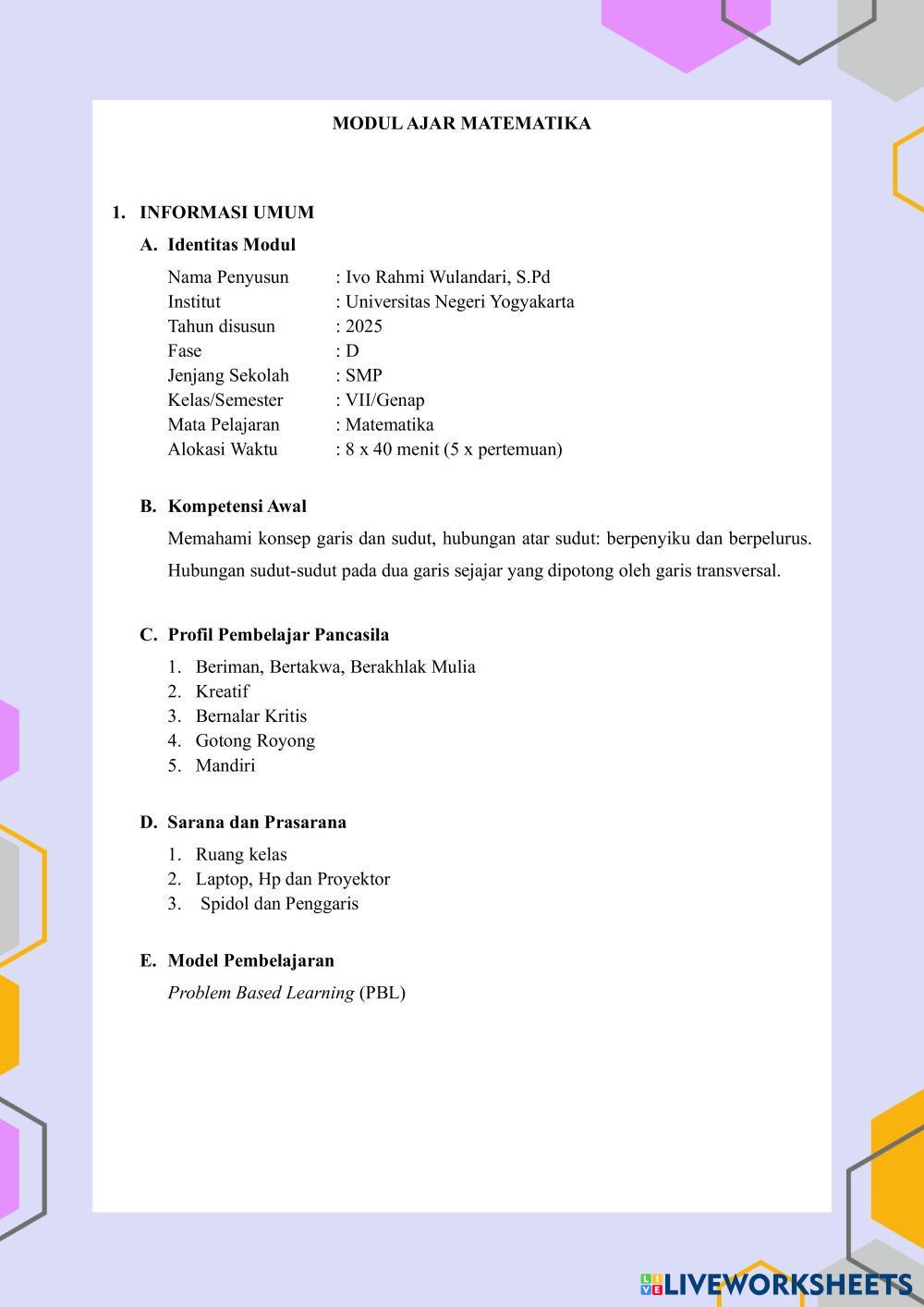 LKPD Matematika Kelas VIII (Teorema Pythagoras)
