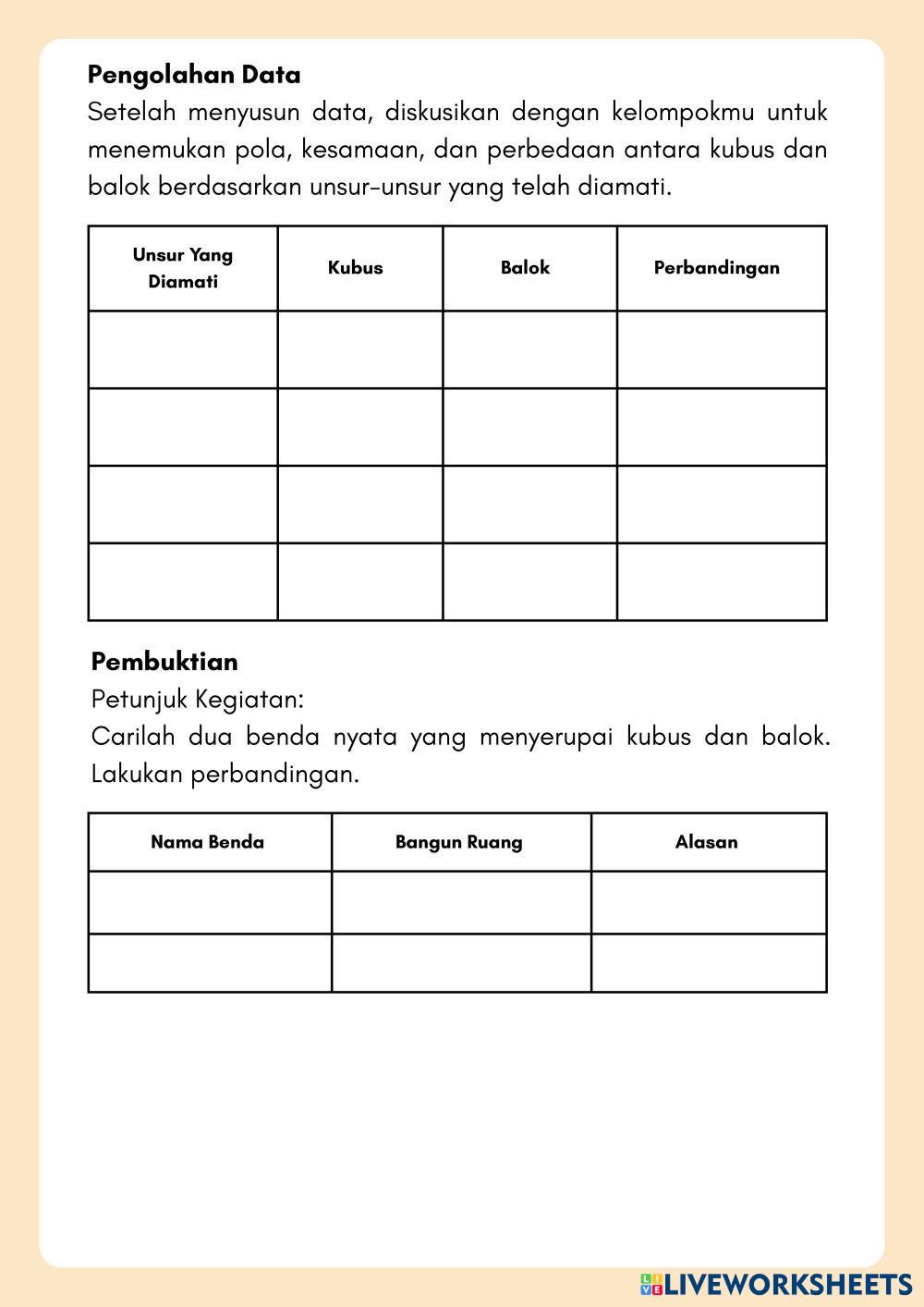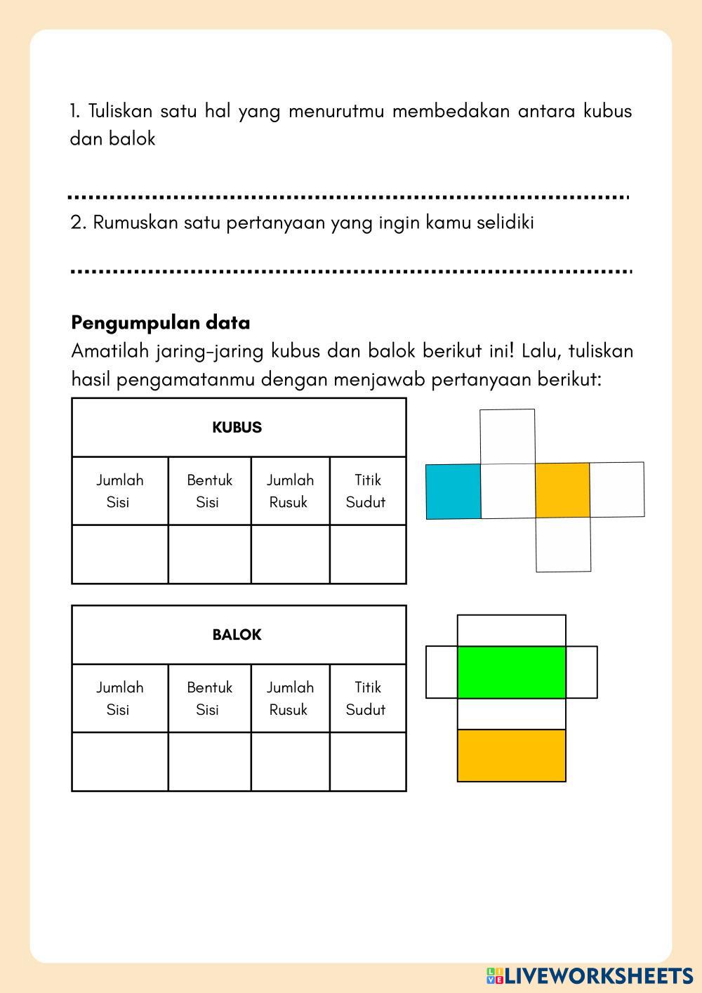 Created by cepmumu Math Middle School 7th grade Geometry Indonesian Author's Instructions Bangun Ruang Sisi Datar My Google Classroom Courses × 0 classes selected (0 students total) Quick Access Select all classes (0 classes) All Classes Loading courses... Cancel Share Share to selected Course __COURSE_NAME__ __STUDENT_NAME__ (__STUDENT_EMAIL__) Bangun Ruang Sisi Datar Download Worksheet Validation Check my answers Emails my answers to my teacher Full name Group/level School subject Teacher's email or key code Close Submit Validating worksheet... (12) Your answers have been sent to your teacher. Good luck! OK We encountered an error submitting your answers. Please try again. OK Advertisement | Go Ad Free Created by cepmumu Math Middle School 7th grade Geometry Indonesian Author's Instructions Bangun Ruang Sisi Datar Explore Worksheets Кути при перетині двох прямих січною Math 7th grade Кути при перетині двох прямих січною Geometry - Math Дайте відповідь на питання matematika Math 7th grade matematika Geometry - Math jika ada yang tidak dimengerti silahkan ditanyakan.kerjakan sesuai instruksi yang ada. silahkan pelajari dan jawab soal dengan baik dan benar. Worksheet Geometri Transformasi | Translasi kelas VII Math 7th grade Worksheet Geometri Transformasi | Translasi kelas VII Geometry - Math Answer LKPD Bangun Ruang Math 7th grade LKPD Bangun Ruang Geometry - Math Kerjakan dengan baik dan benar