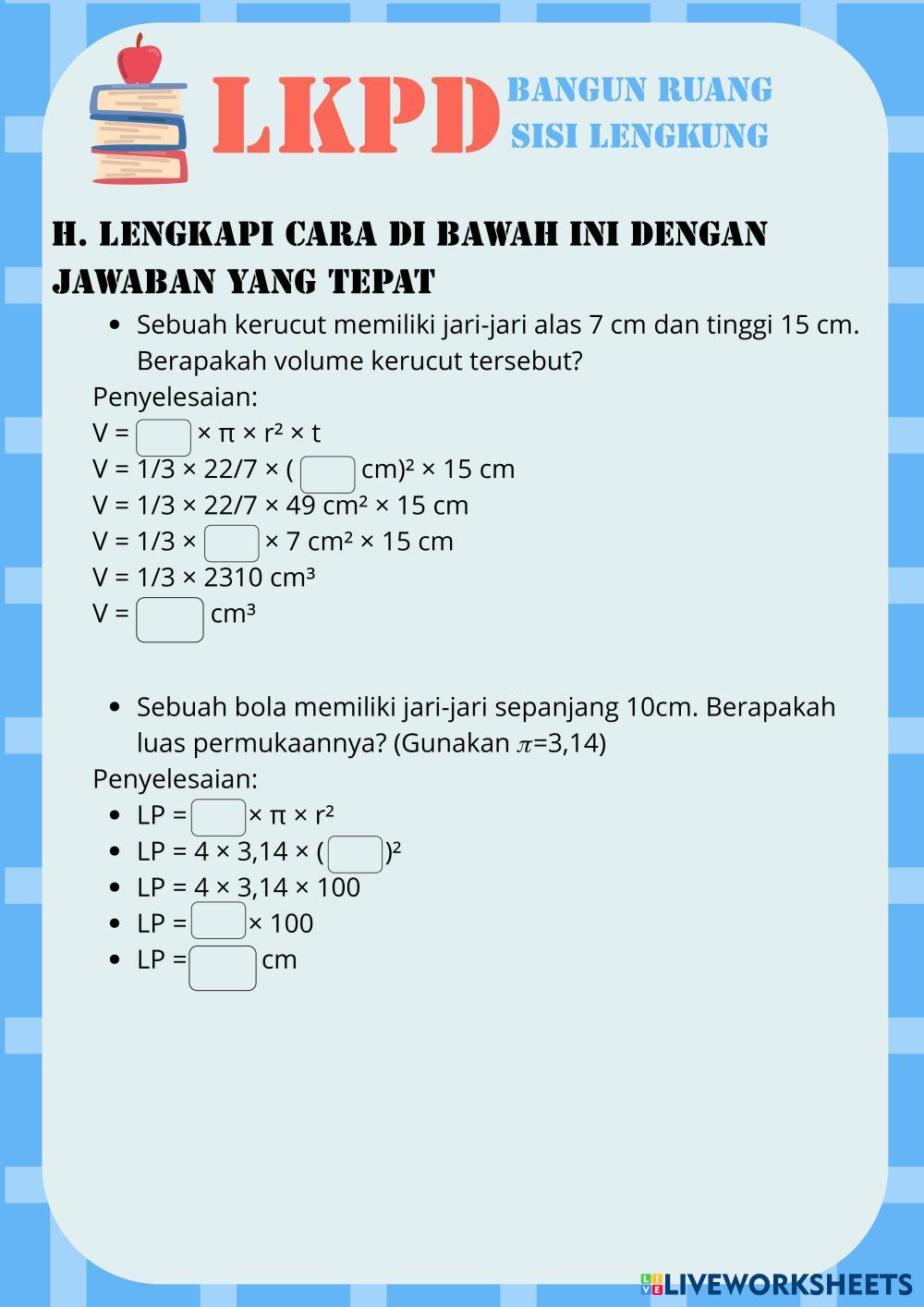 Created by Arinahm Math High School 9th grade Geometry Indonesian Author's Instructions Kerjakan dengan baik dan benar My Google Classroom Courses × 0 classes selected (0 students total) Quick Access Select all classes (0 classes) All Classes Loading courses... Cancel Share Share to selected Course __COURSE_NAME__ __STUDENT_NAME__ (__STUDENT_EMAIL__) Arina Hidayatul Mustaghfiroh Download Worksheet Validation Check my answers Emails my answers to my teacher Full name Group/level School subject Teacher's email or key code Close Submit Validating worksheet... (12) Your answers have been sent to your teacher. Good luck! OK We encountered an error submitting your answers. Please try again. OK Advertisement | Go Ad Free Created by Arinahm Math High School 9th grade Geometry Indonesian Author's Instructions Kerjakan dengan baik dan benar Explore Worksheets حل تدريب 2 في الكتاب صفحة 106 Math 9th grade حل تدريب 2 في الكتاب صفحة 106 Geometry - Math قم بتحويل الخوارزمية الى مخطط انسيابي Geometría Math 9th grade Geometría Geometry - Math Realice de manera honesta los siguientes ejercicios de geometría. Geometría Math 9th grade Geometría Geometry - Math Realice las siguientes preguntas y sea honesto con usted mismo al momento de resolver. LKPD Transformasi geometri_Kurikulum Merdeka Math 9th grade LKPD Transformasi geometri_Kurikulum Merdeka Geometry - Math Hai! Yuk kerjakan LKPD Transformasi Geometri ini dengan sungguh-sungguh! 😊 Ikuti petunjuk di setiap soal, dan jangan lupa periksa kembali jawabanmu sebelum dikumpulkan!