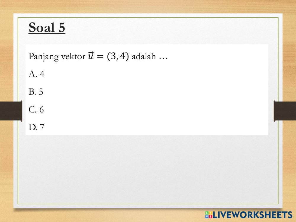 Created by Novika67 Math High School 11th grade Geometry Indonesian Author's Instructions Peserta didik mengerjakan secara individu My Google Classroom Courses × 0 classes selected (0 students total) Quick Access Select all classes (0 classes) All Classes Loading courses... Cancel Share Share to selected Course __COURSE_NAME__ __STUDENT_NAME__ (__STUDENT_EMAIL__) Kuis TP11 Pembuktian Geometris Menggunakan Vektor Download Worksheet Validation Check my answers Emails my answers to my teacher Full name Group/level School subject Teacher's email or key code Close Submit Validating worksheet... (12) Your answers have been sent to your teacher. Good luck! OK We encountered an error submitting your answers. Please try again. OK Advertisement | Go Ad Free Created by Novika67 Math High School 11th grade Geometry Indonesian Author's Instructions Peserta didik mengerjakan secara individu Explore Worksheets Latihan Transformasi geometri Math 11th grade Latihan Transformasi geometri Geometry - Math pilih jawaban dengan benar Latihan Transformasi geometri Math 11th grade Latihan Transformasi geometri Geometry - Math Isilah setiap soal dibawah ini dengan menuliskan koordinat bayangan titik sesuai transformasi yang diminta LKPD LINGKARAN DAN SUDUT Math 11th grade LKPD LINGKARAN DAN SUDUT Geometry - Math LKPD LINGKARAN DAN SUDUT LATIHAN SOAL SAS MATEMATIKA Math 11th grade LATIHAN SOAL SAS MATEMATIKA Geometry - Math Silakan kerjakan soal berikut!