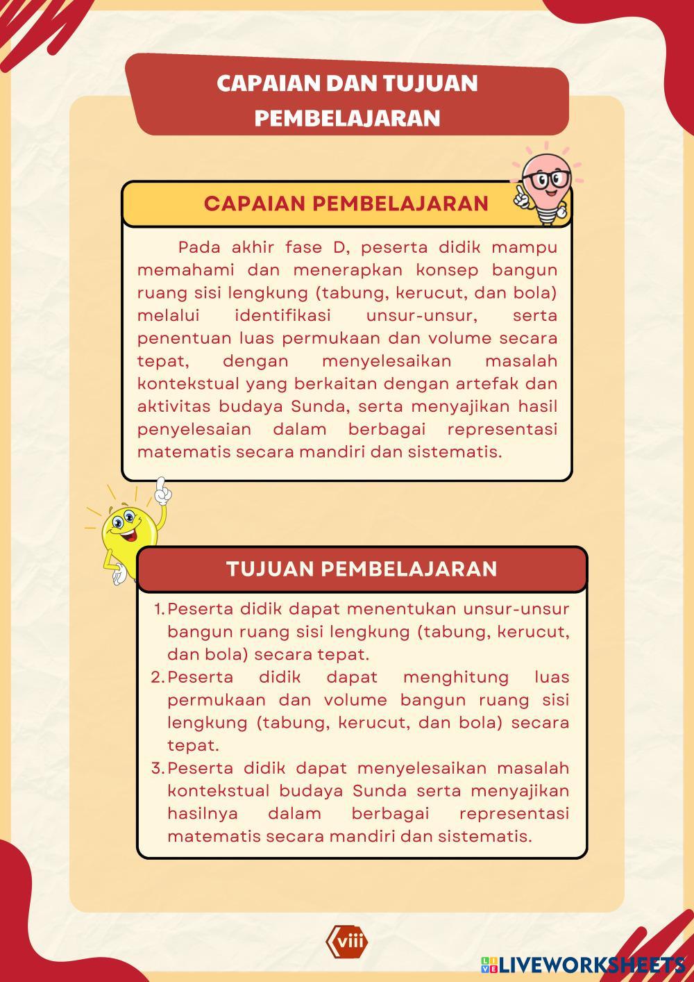 E-LKPD Berbasis Etnomatematika Budaya Sunda ini digunakan sebagai bahan ajar interaktif untuk peserta didik kelas IX pada materi Bangun Ruang Sisi Lengkung.