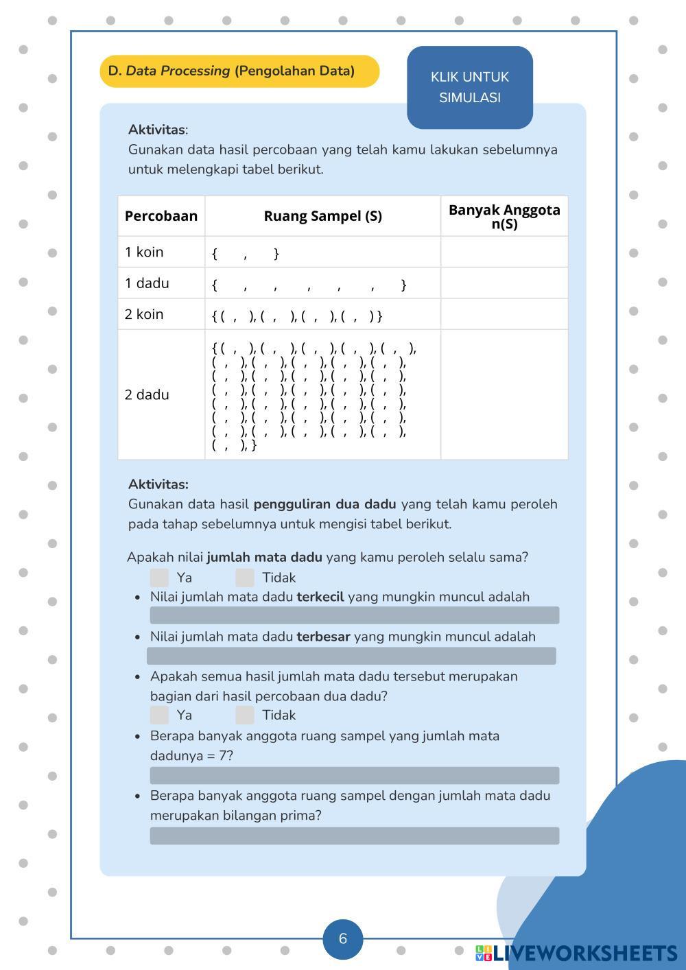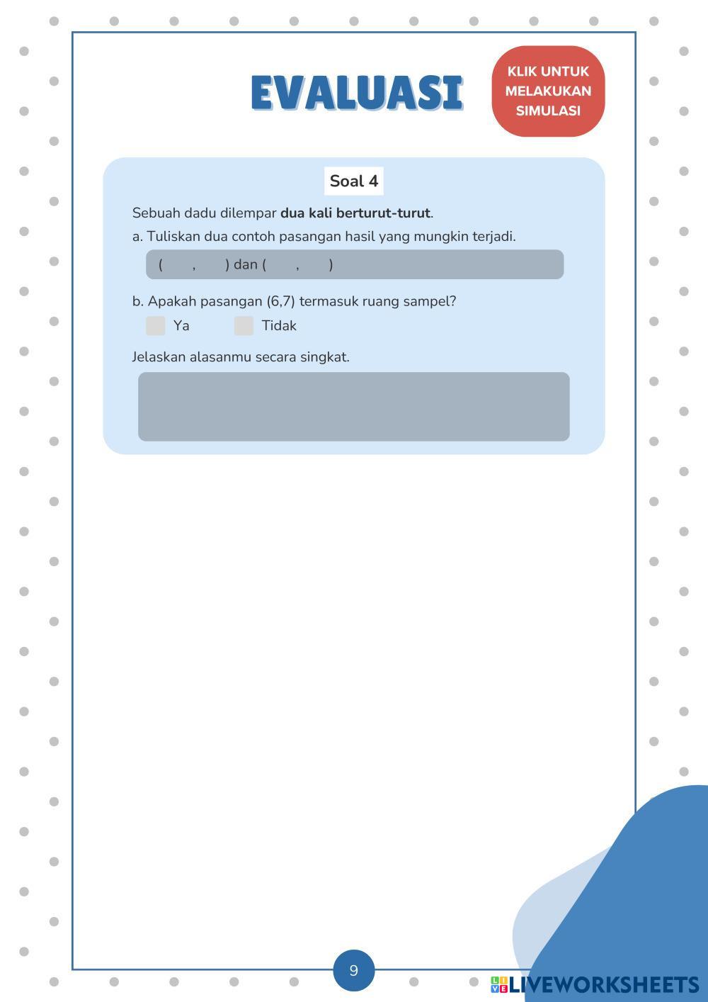 Jika terdapat gambar, tabel, atau percobaan sederhana (misalnya pelemparan koin atau dadu), amati dengan saksama sebelum menentukan jawaban.