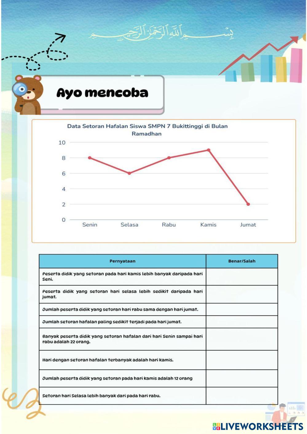 Sajikan kembali data tersebut ke dalam bentuk tabel atau diagram sesuai instruksi soal.