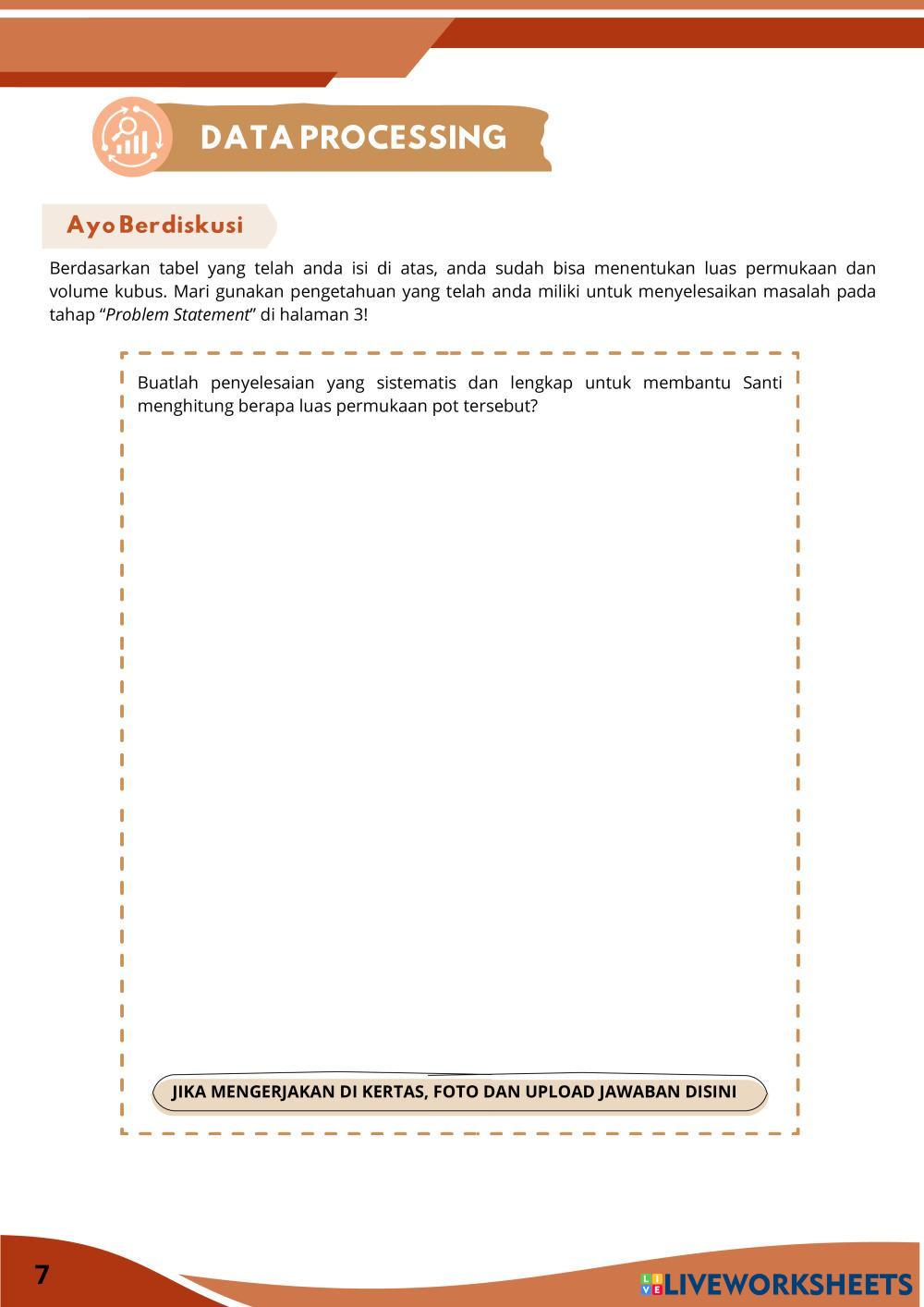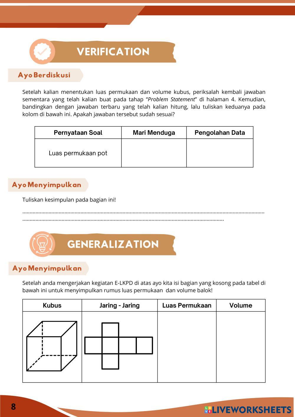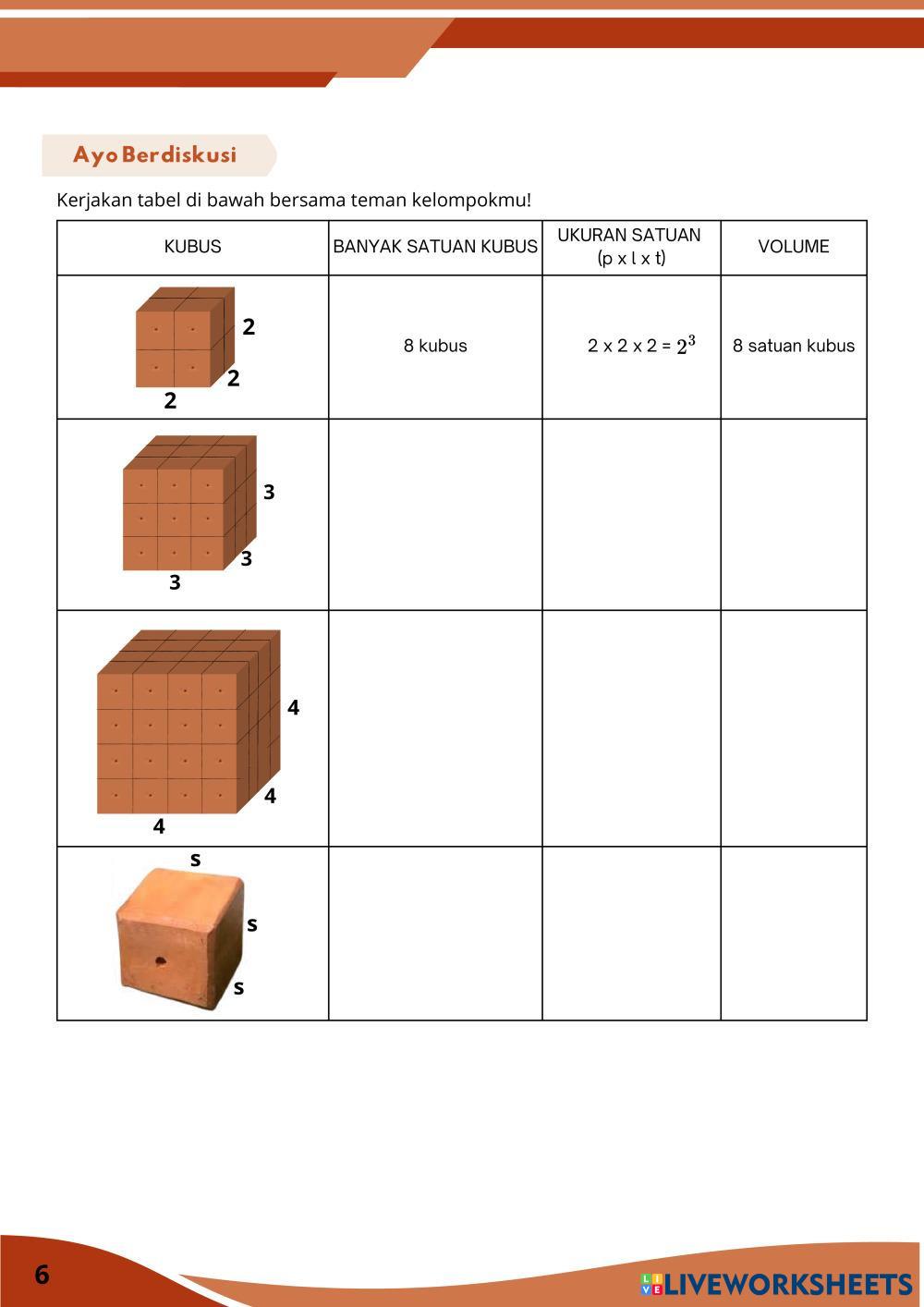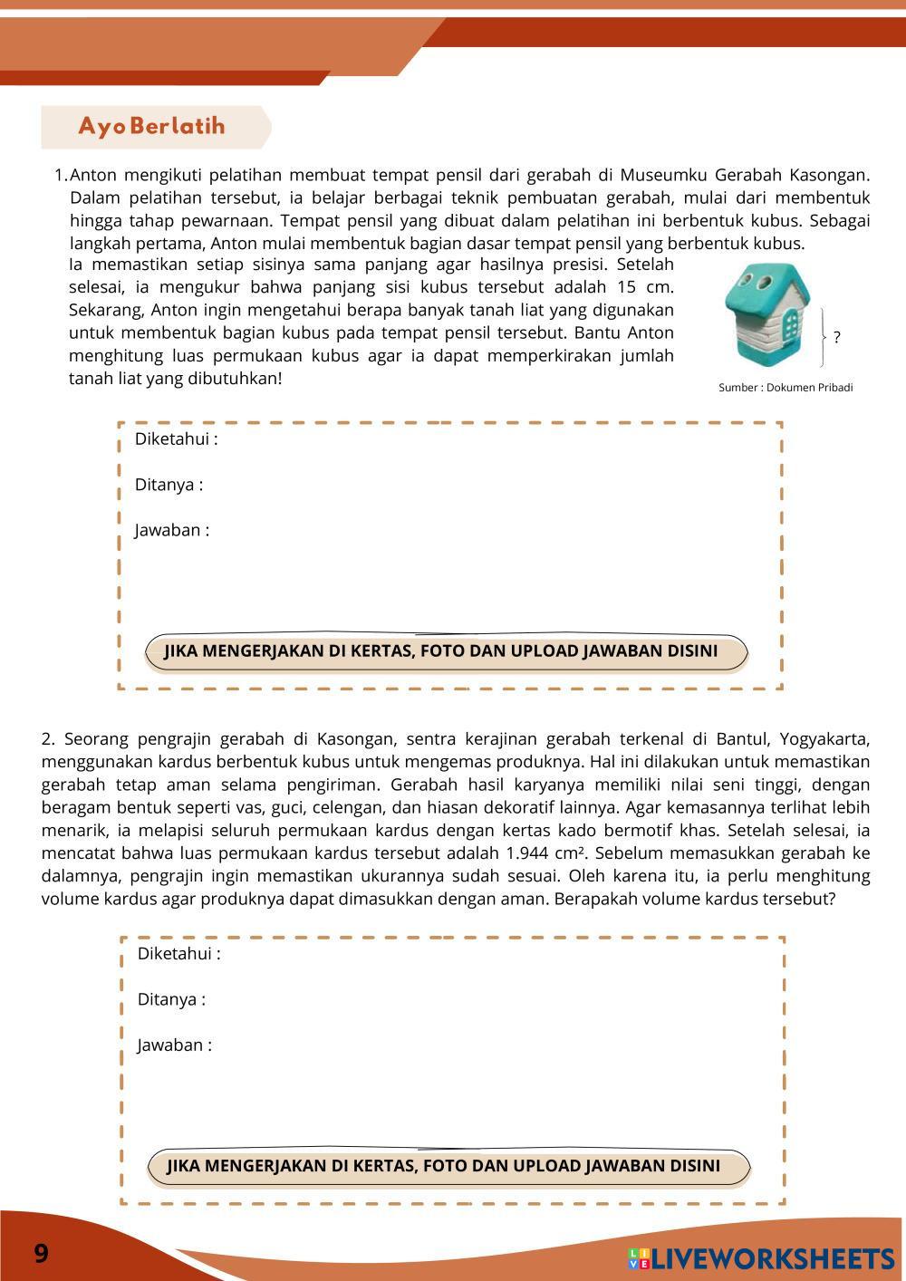 Created bySasikirana Zahra MTK Bangun ruang sisi datar Age 13-18 level: 8 Indonesian Author's Instructions My Google Classroom Courses × 0 classes selected (0 students total) Quick Access Select all classes (0 classes) All Classes Loading courses... Cancel Share Share to selected Course __COURSE_NAME__ __STUDENT_NAME__ (__STUDENT_EMAIL__) E-LKPD Kubus Berbasis Discovery Learning Download Worksheet Validation Check my answers Emails my answers to my teacher Full name Group/level School subject Teacher's email or key code Close Submit Validating worksheet... (12) Your answers have been sent to your teacher. Good luck! OK We encountered an error submitting your answers. Please try again. OK Advertisement | Go Ad Free Created bySasikirana Zahra MTK Bangun ruang sisi datar Age 13-18 level: 8 Indonesian Author's Instructions