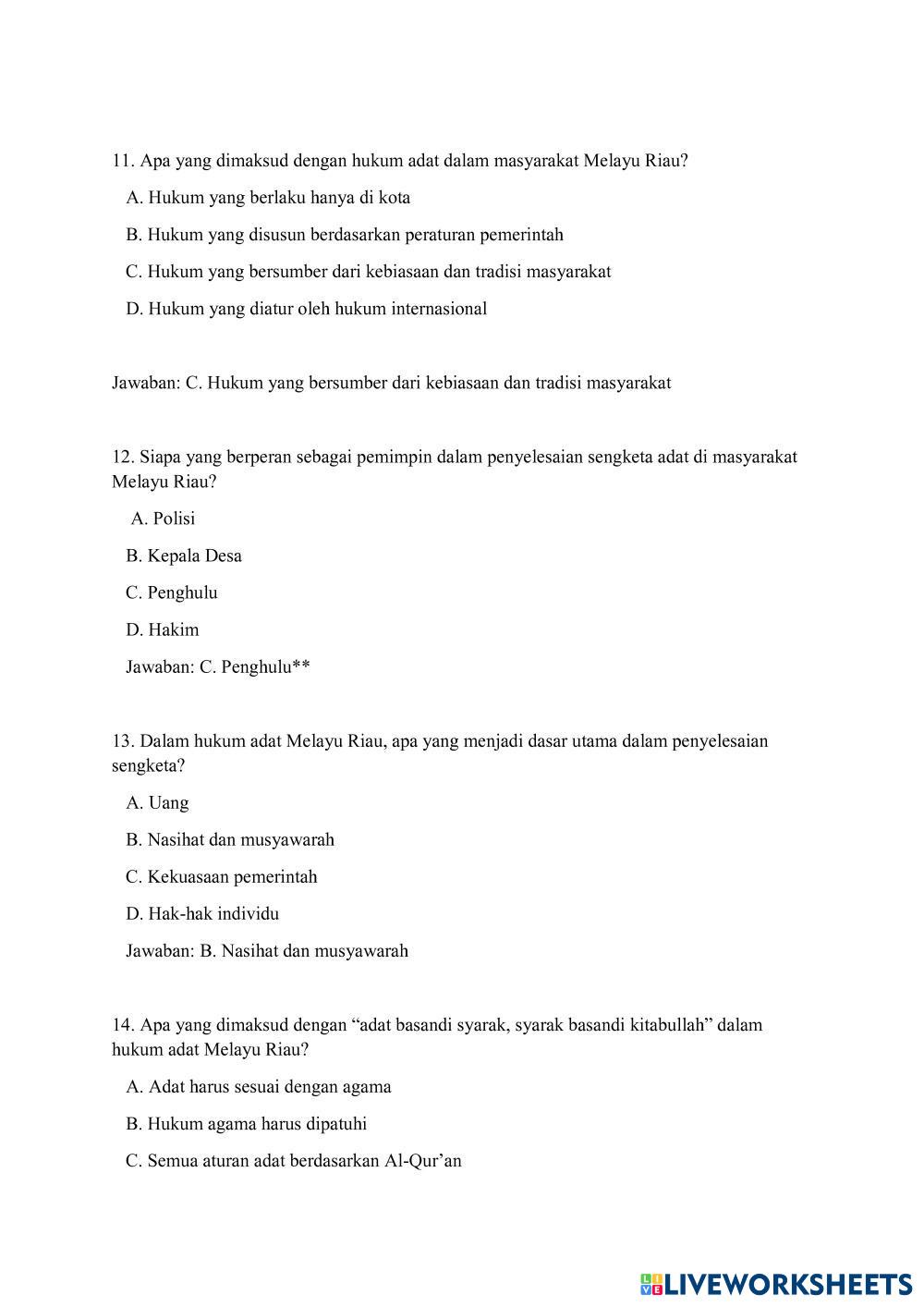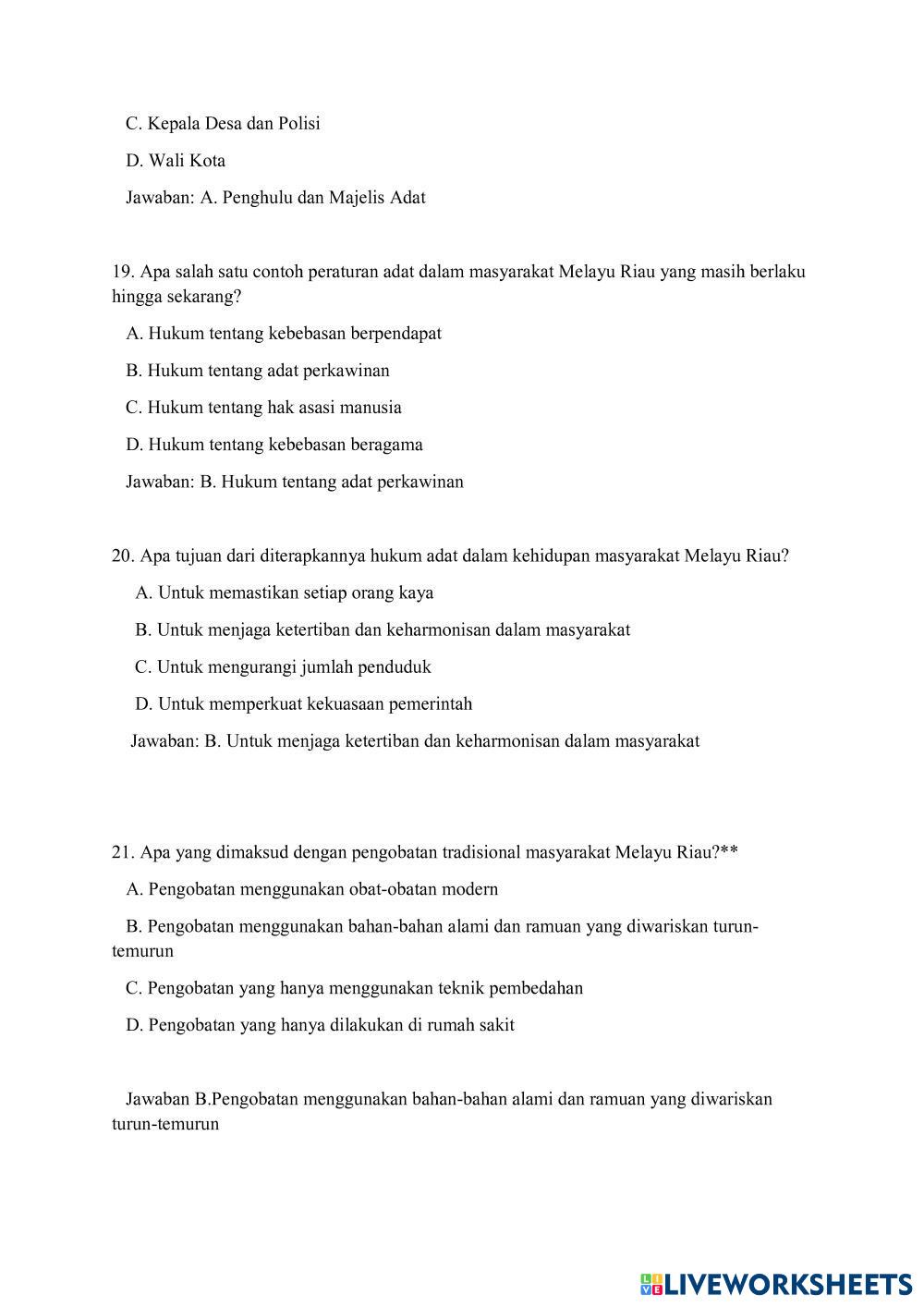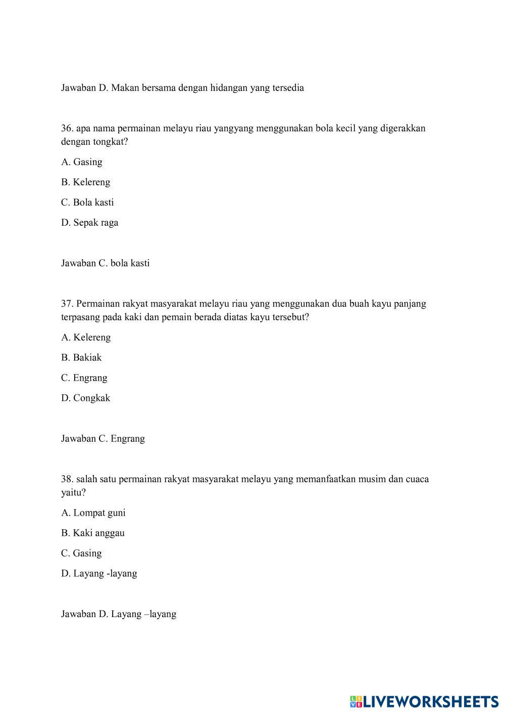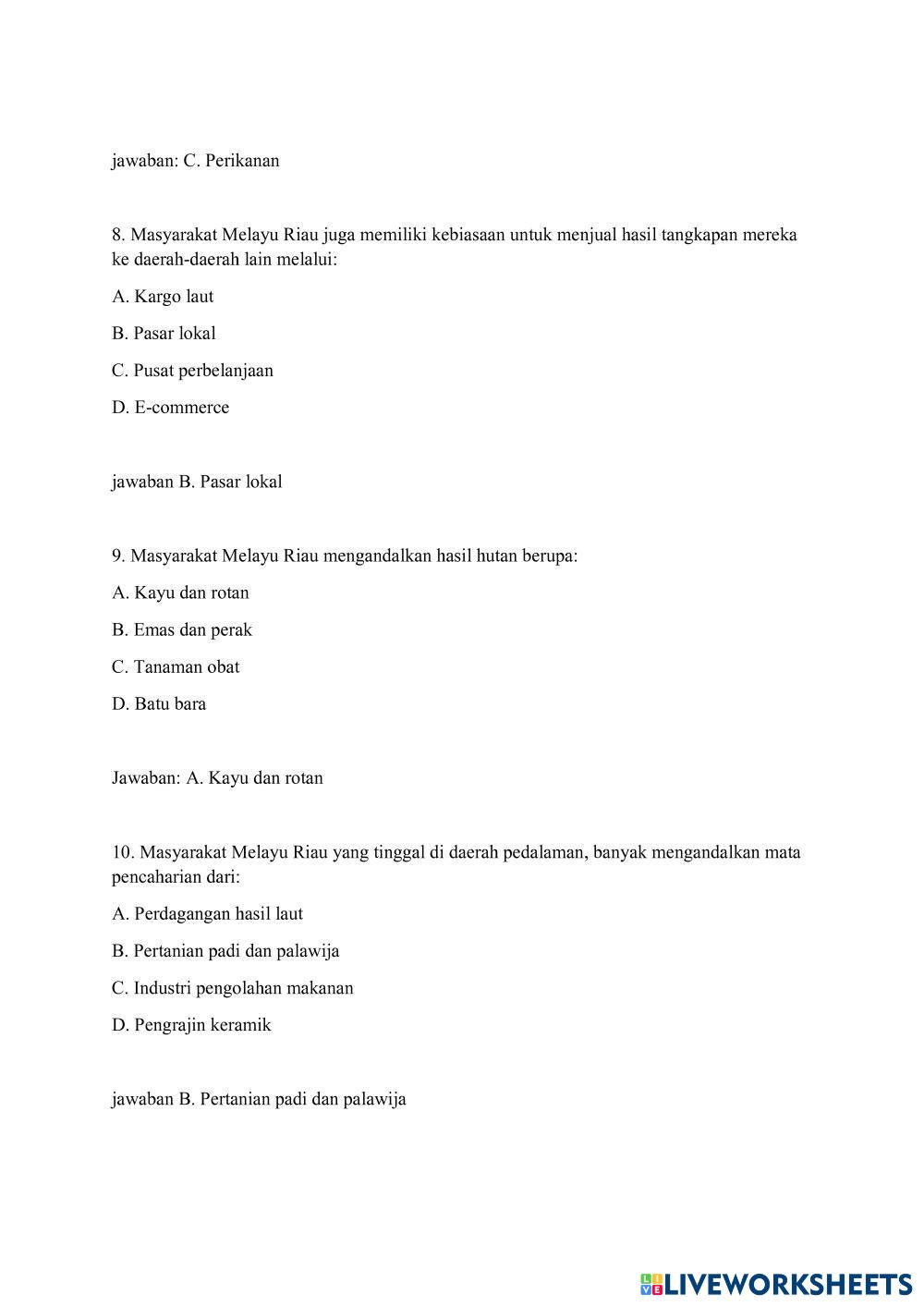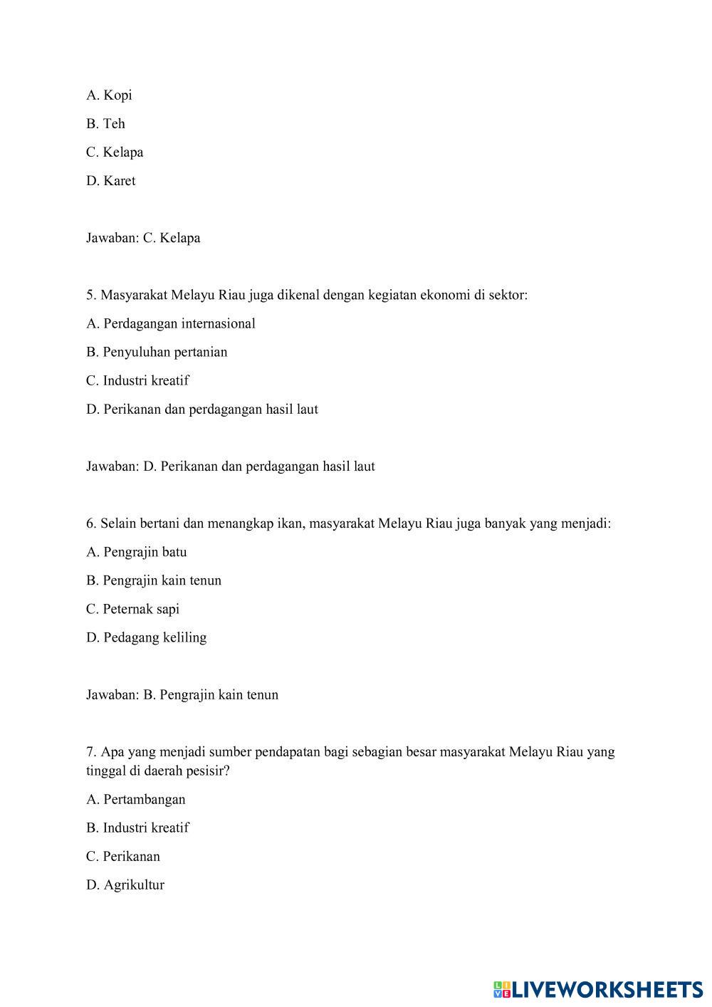 Created byJumi Tuti Handayani Muatan Lokal Budaya Melayu Riau Age 15+ level: FASE LANJUTAN Indonesian Author's Instructions My Google Classroom Courses × 0 classes selected (0 students total) Quick Access Select all classes (0 classes) All Classes Loading courses... Cancel Share Share to selected Course __COURSE_NAME__ __STUDENT_NAME__ (__STUDENT_EMAIL__) UJIAN UAS NGAH Download Worksheet Validation Check my answers Emails my answers to my teacher Full name Group/level School subject Teacher's email or key code Close Submit Validating worksheet... (12) Your answers have been sent to your teacher. Good luck! OK We encountered an error submitting your answers. Please try again. OK Advertisement | Go Ad Free Created byJumi Tuti Handayani Muatan Lokal Budaya Melayu Riau Age 15+ level: FASE LANJUTAN Indonesian Author's Instructions