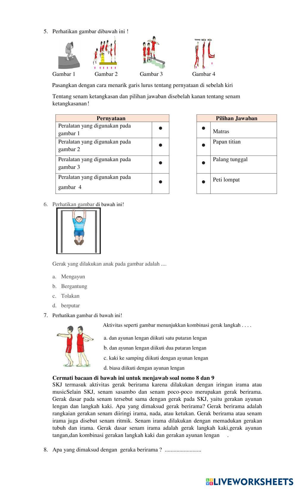 Created by Suriani22 Pendidikan Jasmani Olahraga dan Kesehata Soal PTS Genap PJOK Age 10-15 level: V Indonesian Author's Instructions My Google Classroom Courses × 0 classes selected (0 students total) Quick Access Select all classes (0 classes) All Classes Loading courses... Cancel Share Share to selected Course __COURSE_NAME__ __STUDENT_NAME__ (__STUDENT_EMAIL__) Soal PTS PJOK Genap 5 2024 Download Worksheet Validation Check my answers Emails my answers to my teacher Full name Group/level School subject Teacher's email or key code Close Submit Validating worksheet... (12) Your answers have been sent to your teacher. Good luck! OK We encountered an error submitting your answers. Please try again. OK Advertisement | Go Ad Free Created by Suriani22 Pendidikan Jasmani Olahraga dan Kesehata Soal PTS Genap PJOK Age 10-15 level: V Indonesian Author's Instructions