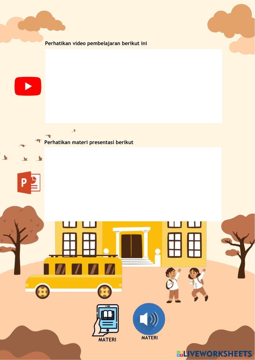 Created byMilna Pendidikan Pancasila dan Kewarganegaraan (PPKn) Contoh sikap dan perilaku yang sesuai dengan nilai-nilai pancasila Age 9-14 level: 4 Indonesian Author's Instructions My Google Classroom Courses × 0 classes selected (0 students total) Quick Access Select all classes (0 classes) All Classes Loading courses... Cancel Share Share to selected Course __COURSE_NAME__ __STUDENT_NAME__ (__STUDENT_EMAIL__) Contoh sikap dan perilaku yang sesuai dengan sila-sila Pancasila Download Worksheet Validation Check my answers Emails my answers to my teacher Full name Group/level School subject Teacher's email or key code Close Submit Validating worksheet... (12) Your answers have been sent to your teacher. Good luck! OK We encountered an error submitting your answers. Please try again. OK Advertisement | Go Ad Free Created byMilna Pendidikan Pancasila dan Kewarganegaraan (PPKn) Contoh sikap dan perilaku yang sesuai dengan nilai-nilai pancasila Age 9-14 level: 4 Indonesian Author's Instructions