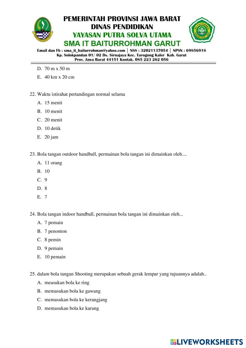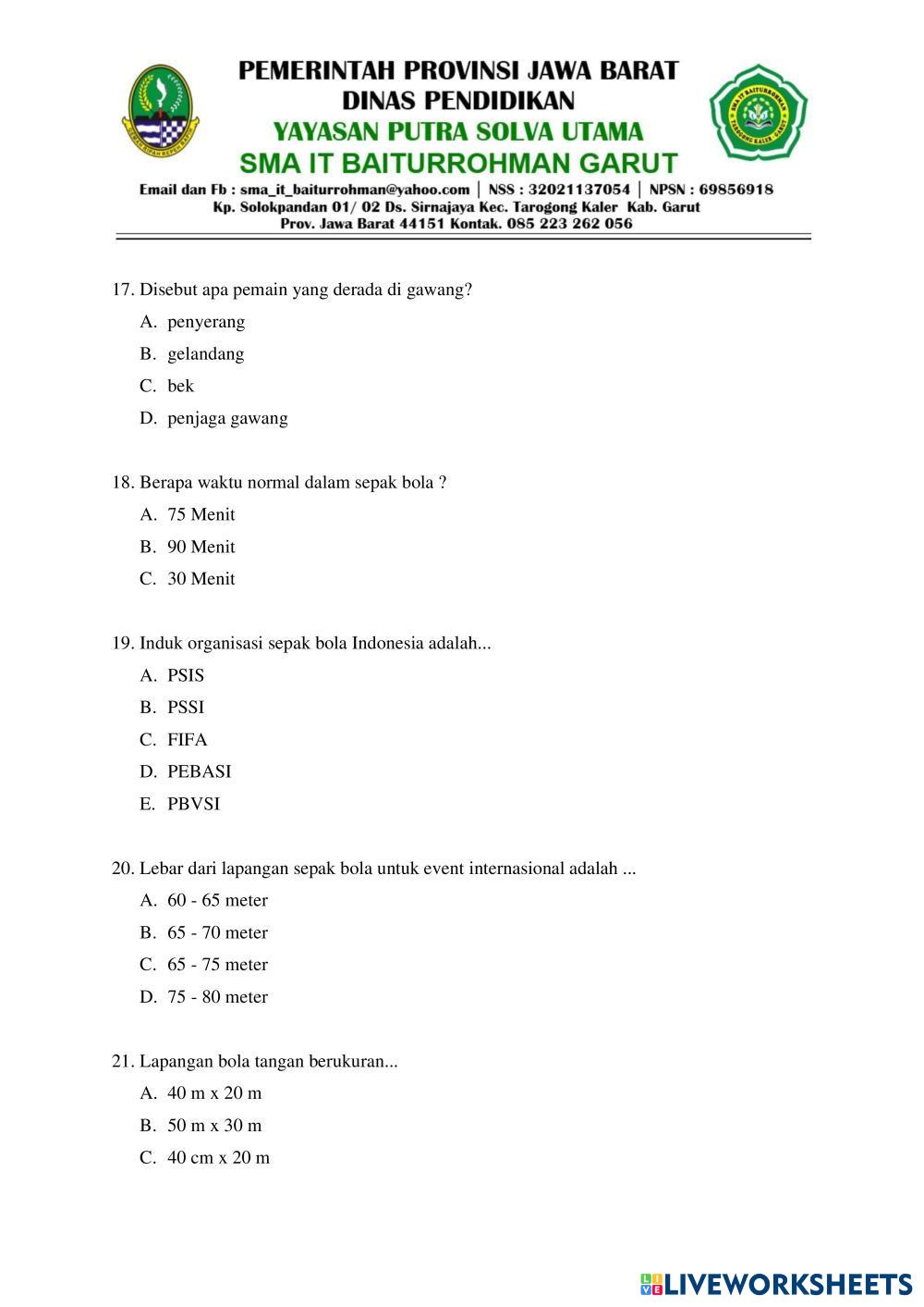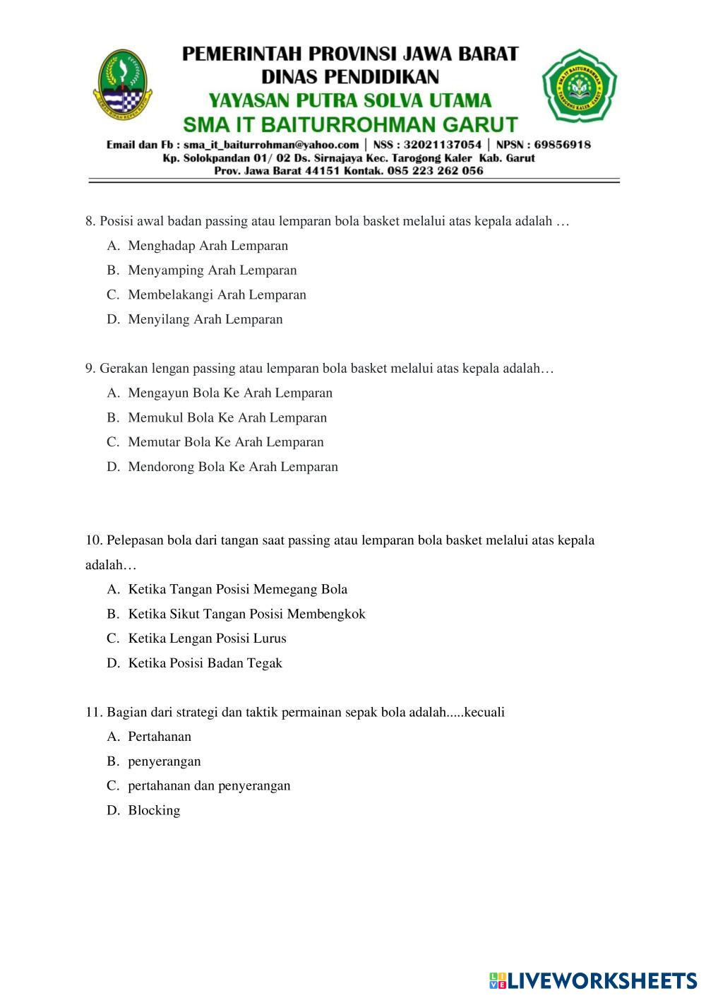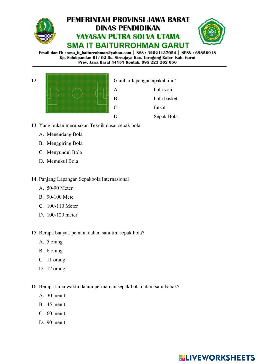 Created byDELA NOOR RAKHMAT SAJIDIN PJOK SMA PSAS PJOK Age 13+ level: SMA Indonesian Author's Instructions My Google Classroom Courses × 0 classes selected (0 students total) Quick Access Select all classes (0 classes) All Classes Loading courses... Cancel Share Share to selected Course __COURSE_NAME__ __STUDENT_NAME__ (__STUDENT_EMAIL__) PSAS PJOK SMA Download Worksheet Validation Check my answers Emails my answers to my teacher Full name Group/level School subject Teacher's email or key code Close Submit Validating worksheet... (12) Your answers have been sent to your teacher. Good luck! OK We encountered an error submitting your answers. Please try again. OK Advertisement | Go Ad Free Created byDELA NOOR RAKHMAT SAJIDIN PJOK SMA PSAS PJOK Age 13+ level: SMA Indonesian Author's Instructions