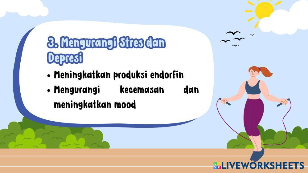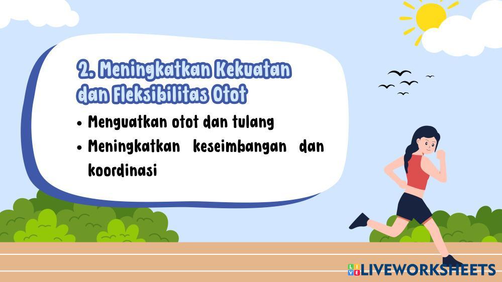Created byRusdia PJOK SMA Kebugaran Jasmani Age 15+ level: X Indonesian Author's Instructions My Google Classroom Courses × 0 classes selected (0 students total) Quick Access Select all classes (0 classes) All Classes Loading courses... Cancel Share Share to selected Course __COURSE_NAME__ __STUDENT_NAME__ (__STUDENT_EMAIL__) Rusdia Download Worksheet Validation Check my answers Emails my answers to my teacher Full name Group/level School subject Teacher's email or key code Close Submit Validating worksheet... (12) Your answers have been sent to your teacher. Good luck! OK We encountered an error submitting your answers. Please try again. OK Advertisement | Go Ad Free Created byRusdia PJOK SMA Kebugaran Jasmani Age 15+ level: X Indonesian Author's Instructions