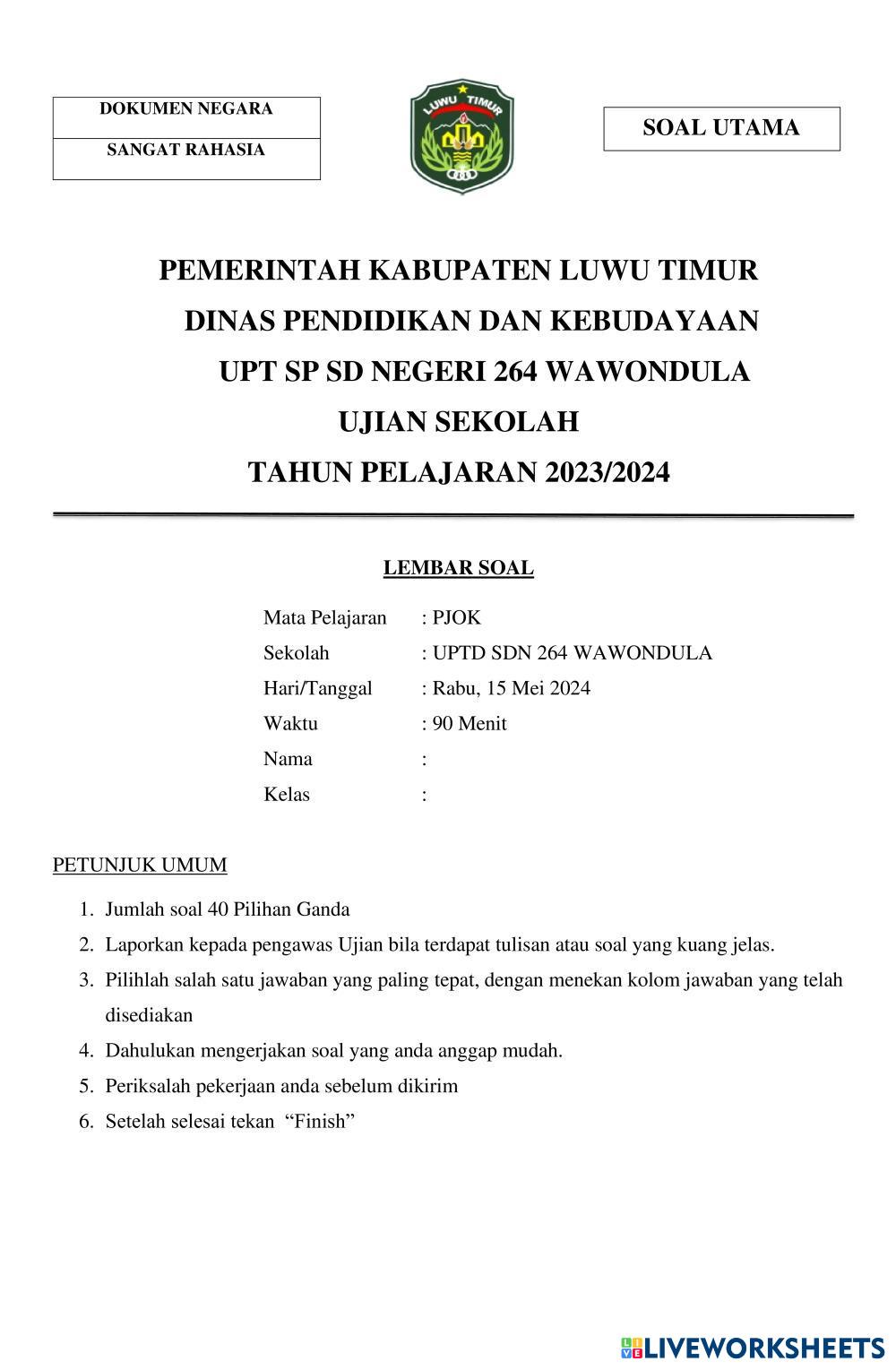 SOAL UJIAN AKHIR SEKOLAH 2024 PJOK