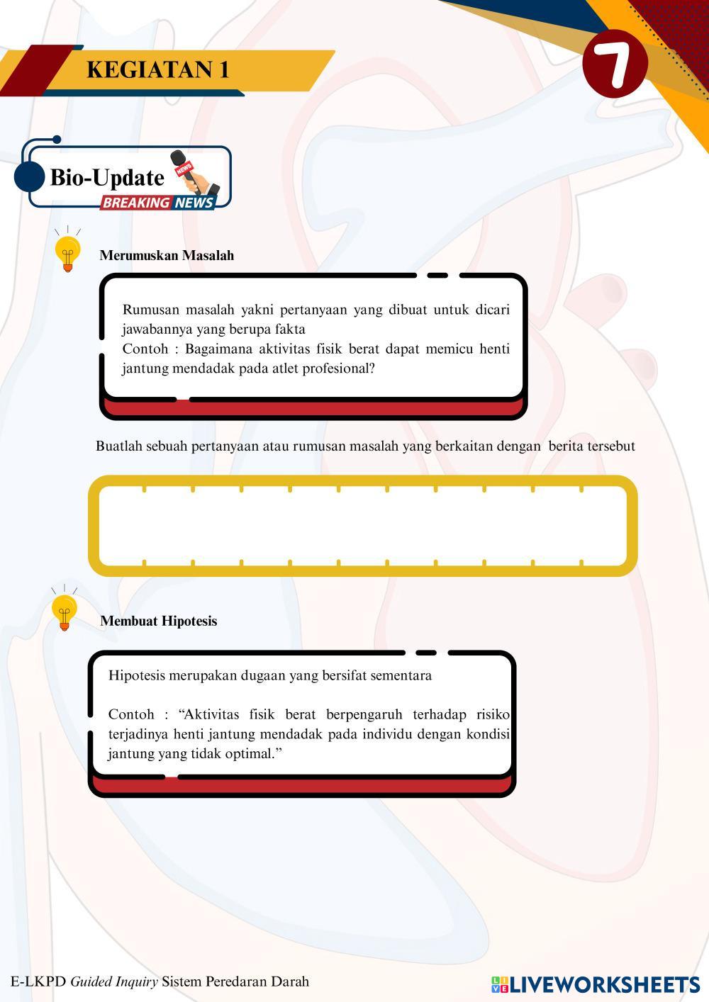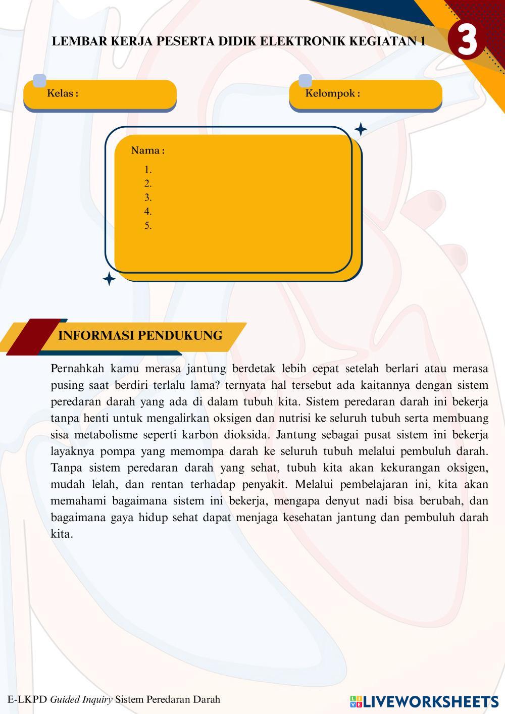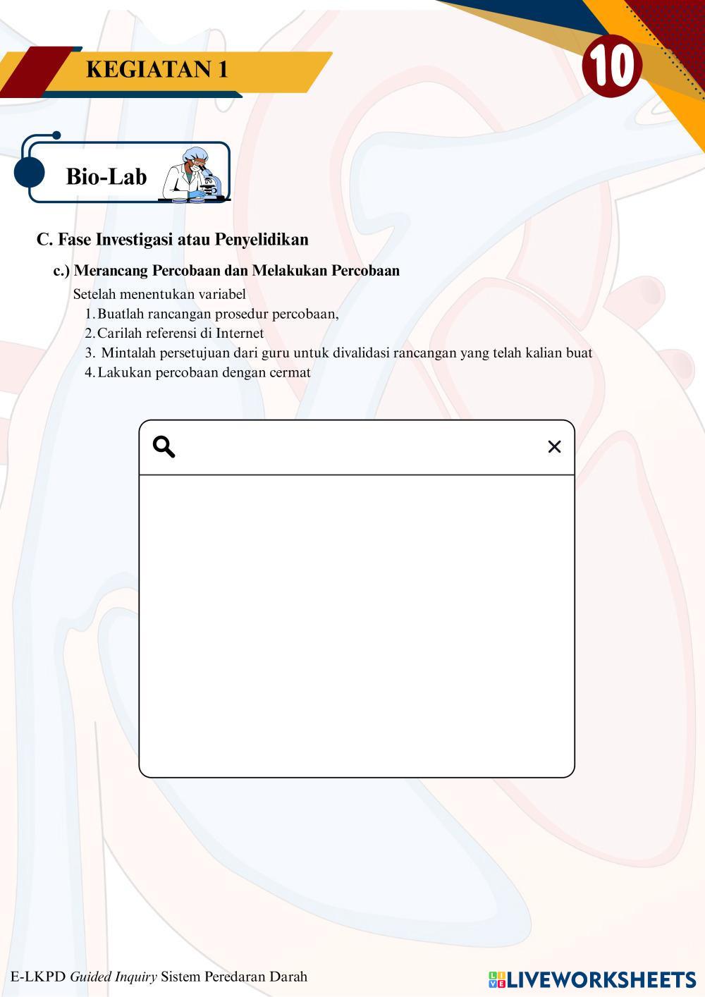 - Setiap peserta didik melakukan percobaan sirkulasi darah (model praktikum) yang telah disediakan oleh guru. Percobaan ini dirancang dengan tujuan agar peserta didik bisa menjawab pertanyaan yang tersedia