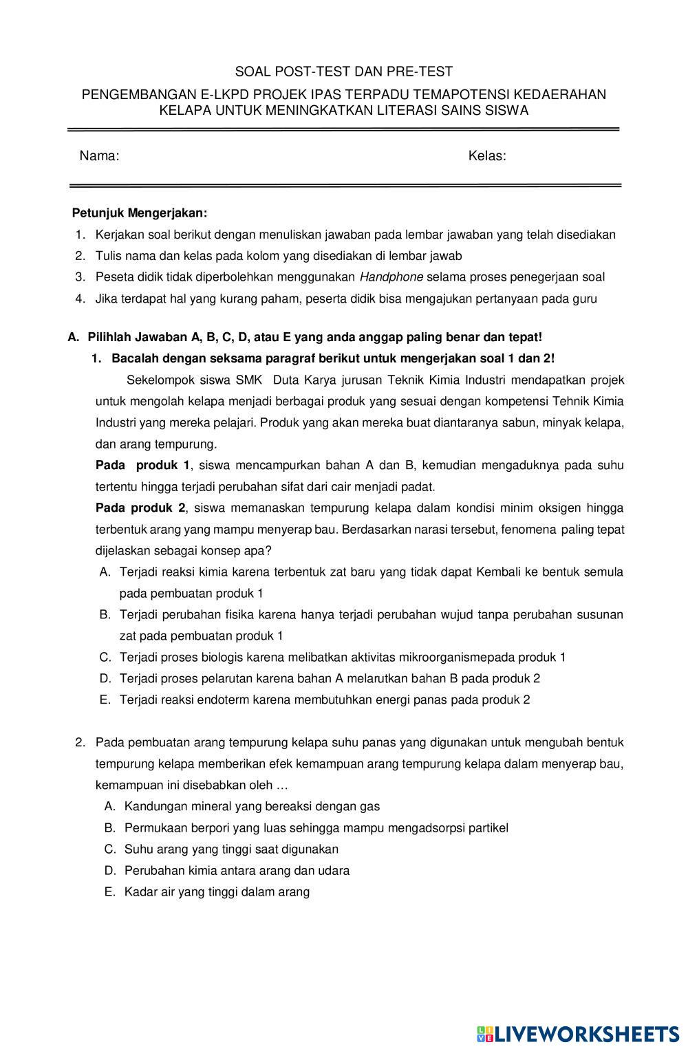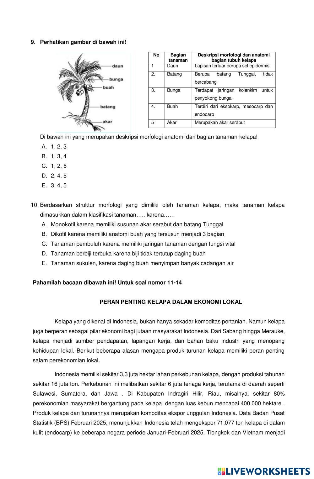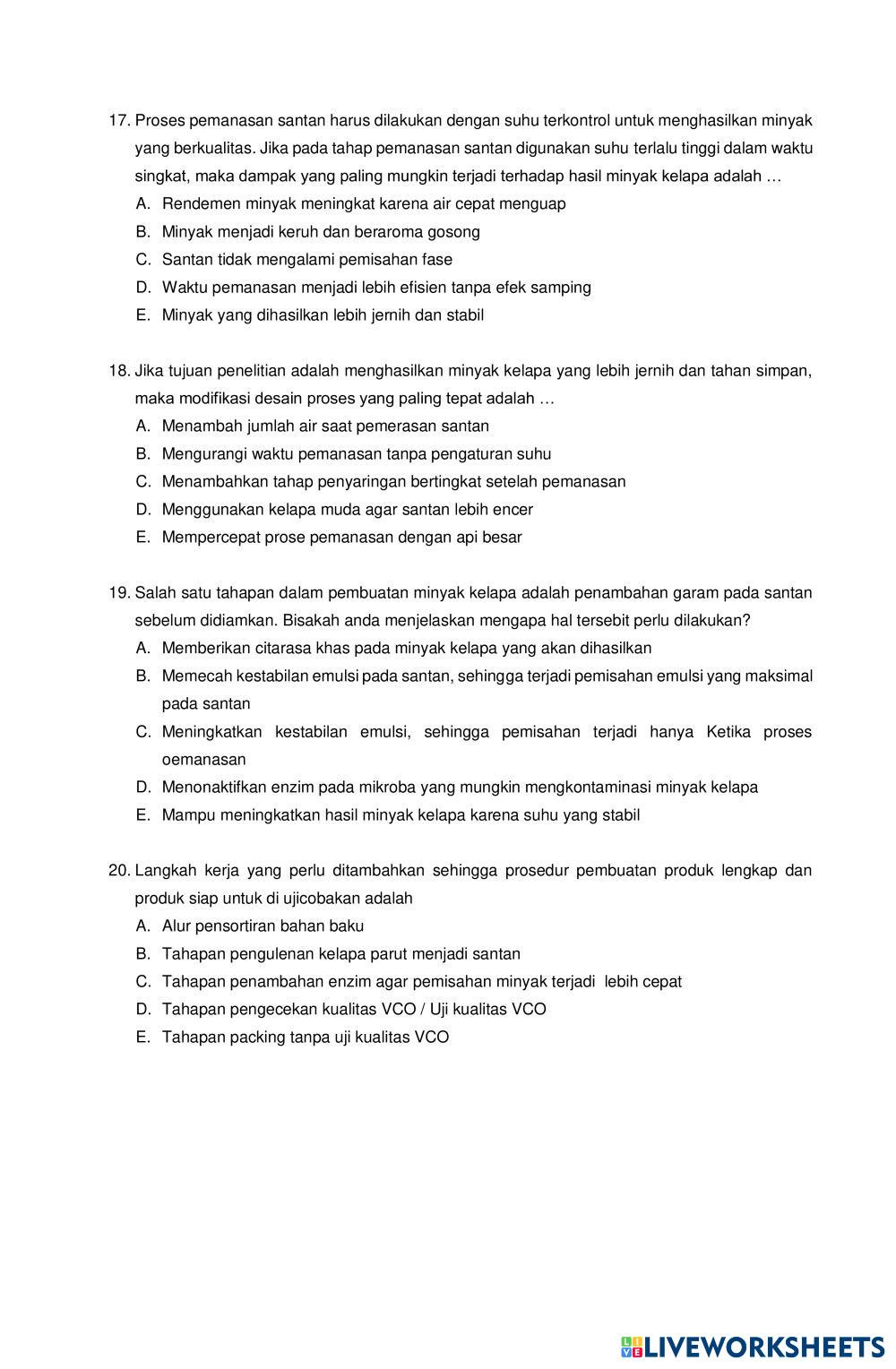 siswa mampu menyelesaiakn soal tentang projek kreatif berbahan baku kelapa