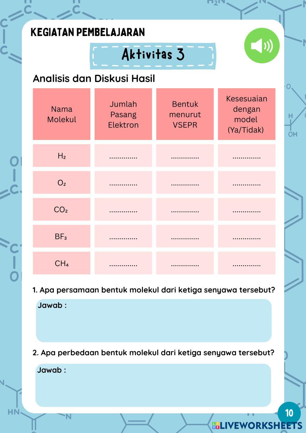 2. Pelajari materi bentuk molekul berdasarkan teori VSEPR.