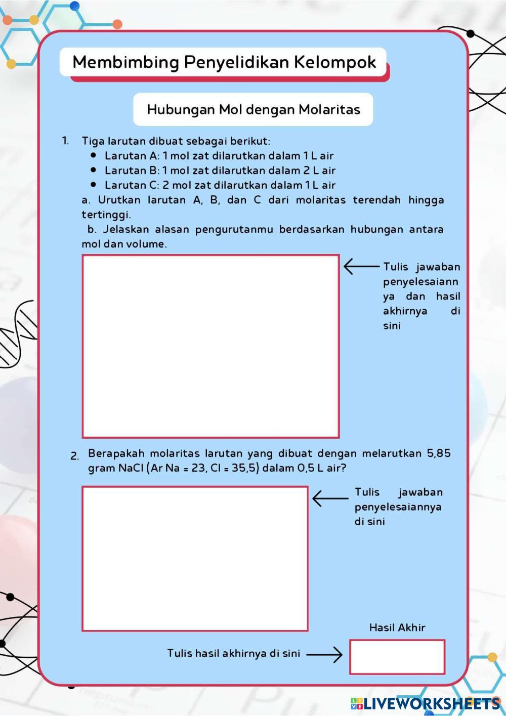 3. Analisis dan diskusikan tugas dalam LKPD berbantuan Liveworksheets ini dengan anggota kelompok.