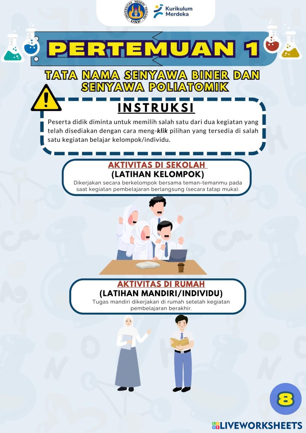 - Peserta didik diminta untuk memilih salah satu dari dua kegiatan yang telah disediakan dengan cara meng-klik pilihan yang tersedia di salah satu kegiatan belajar kelompok/individu