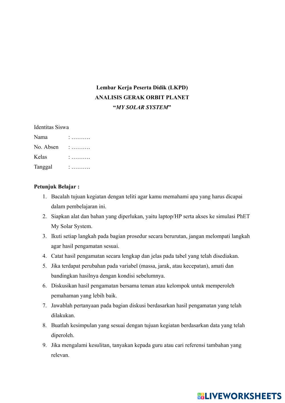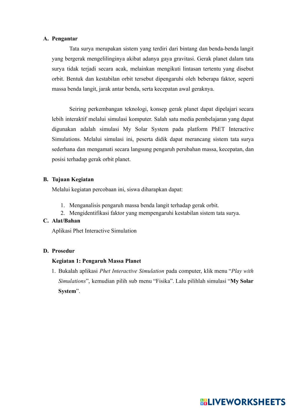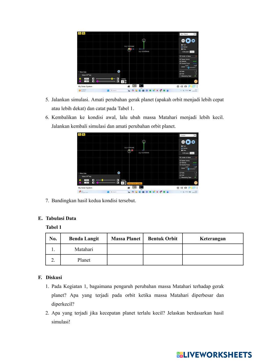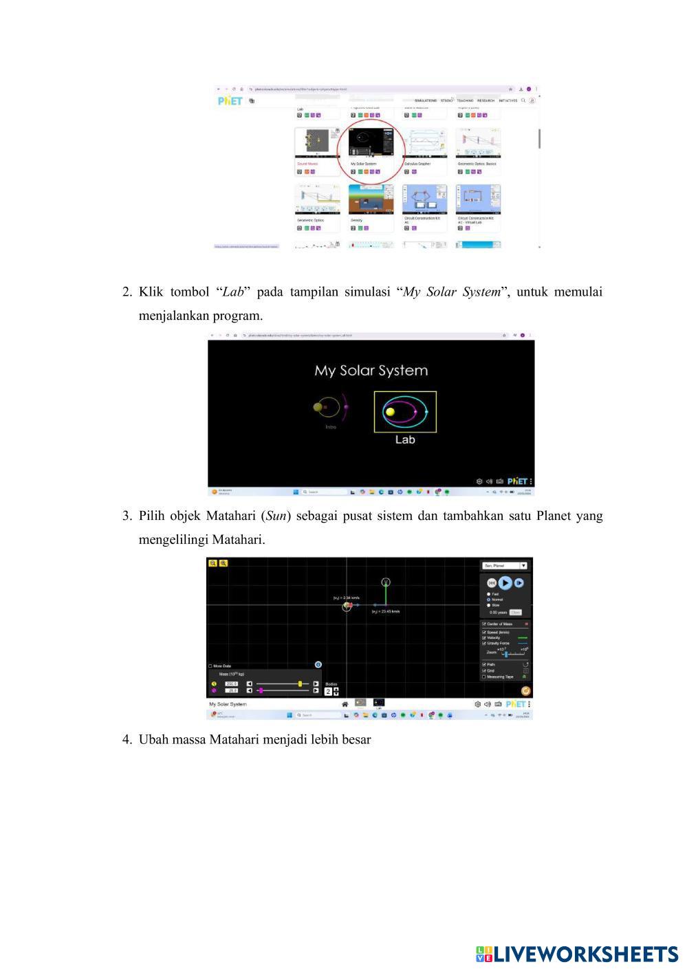 Menganalisis gerak orbit planet dengan menggunakan simulasi Phet "My Solar System"