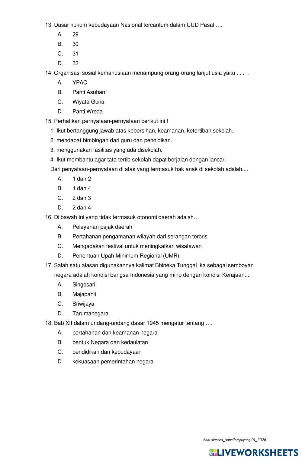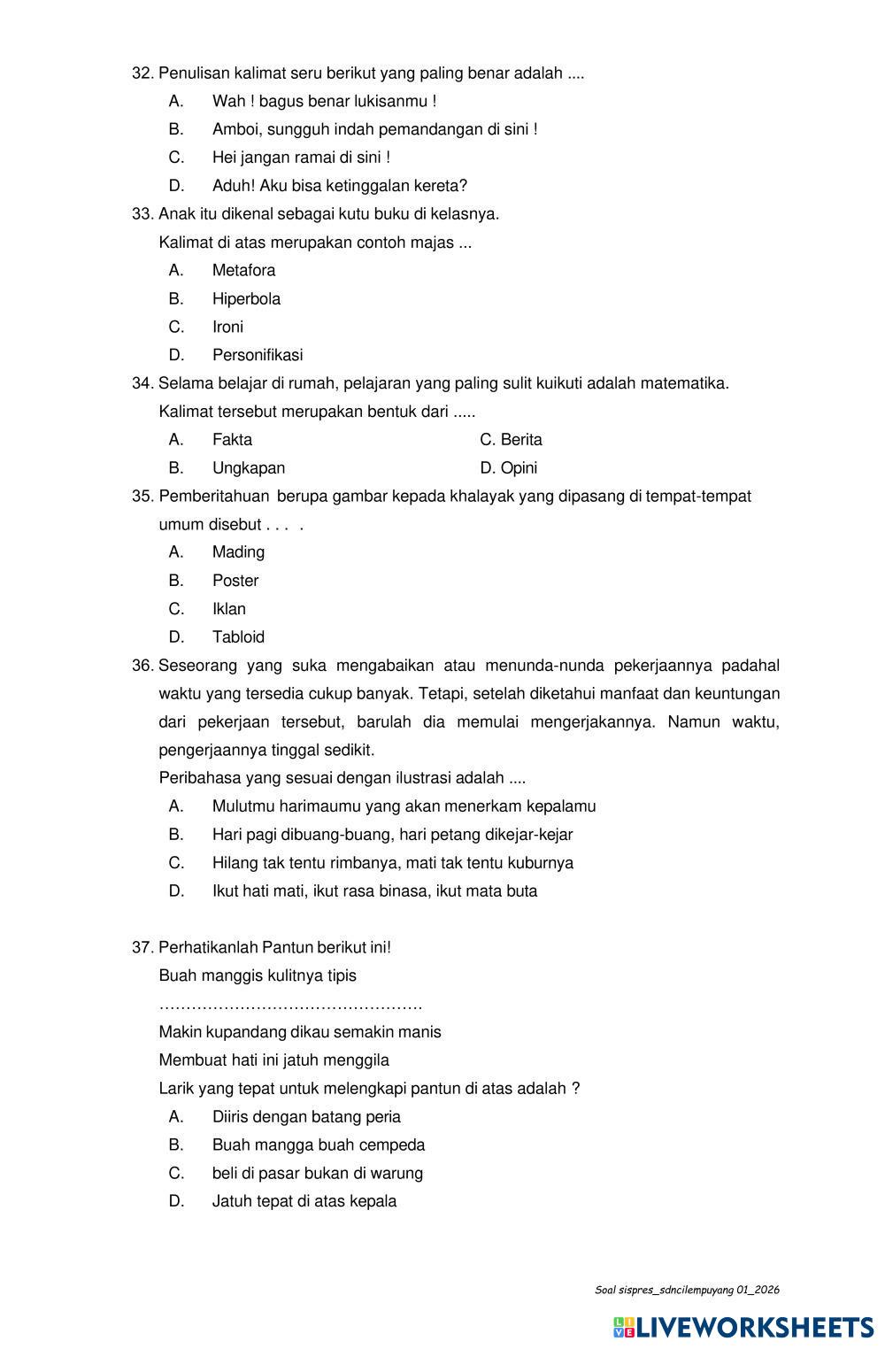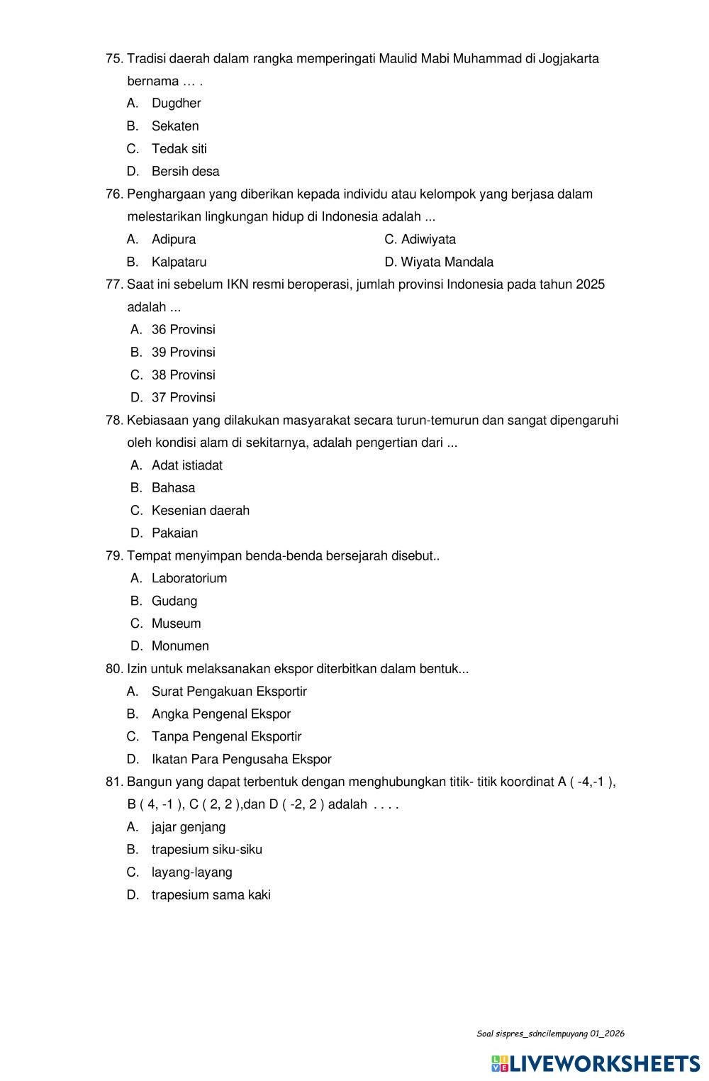 Kerjakan soal dengan teliti !