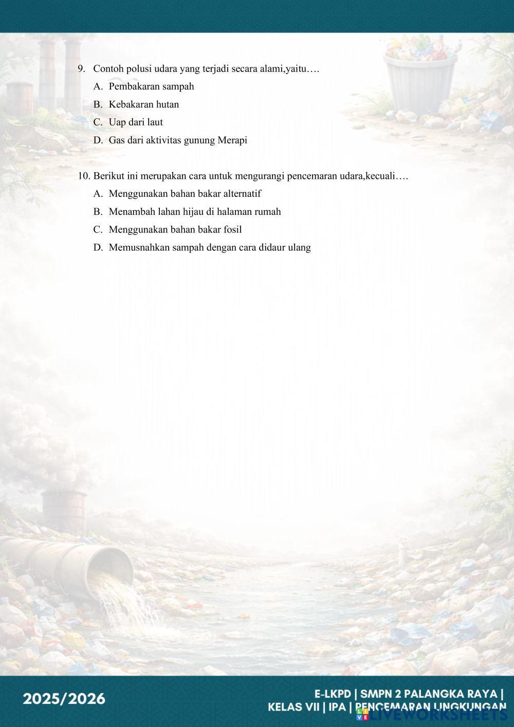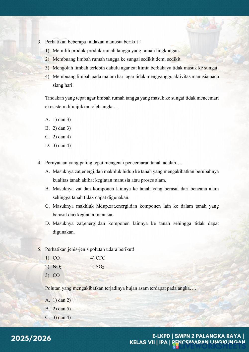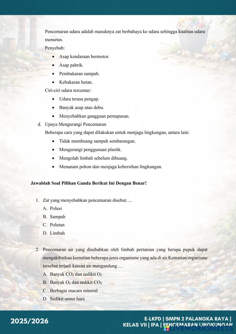 2. Pilihlah satu jawaban yang paling tepat dari pilihan A, B, C, atau D.