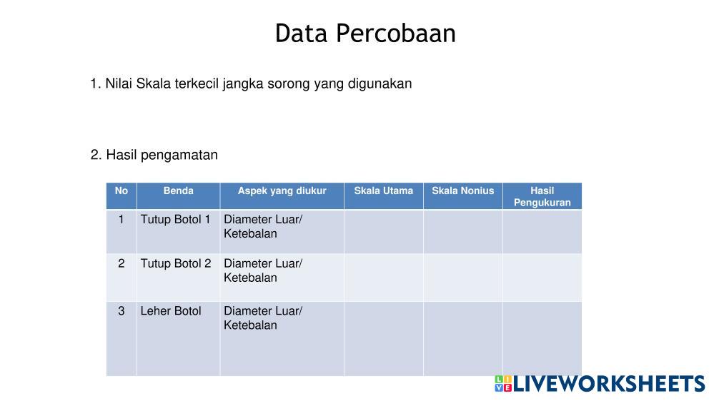 LKPD ini akan membantu anda untuk memahami tentang pengukuran panjang menggunakan alat ukur jangka sorong