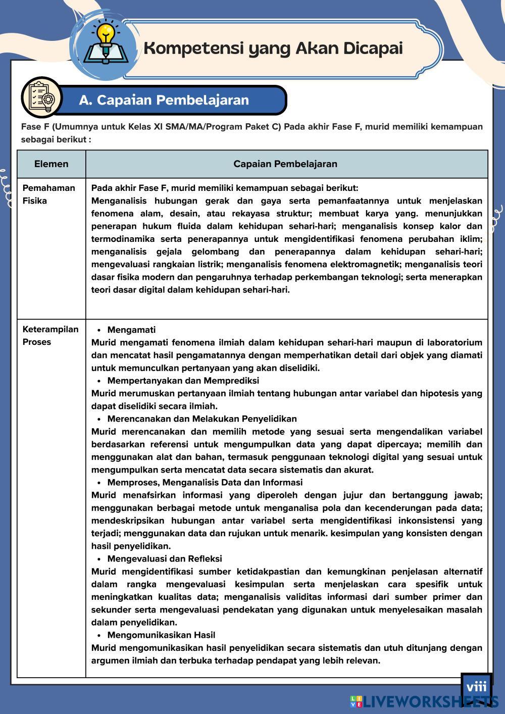 Created byWinda Rudespika Science High School 11th grade Physics Indonesian Author's Instructions - My Google Classroom Courses × 0 classes selected (0 students total) Quick Access Select all classes (0 classes) All Classes Loading courses... Cancel Share Share to selected Course __COURSE_NAME__ __STUDENT_NAME__ (__STUDENT_EMAIL__) Kompetensi Download Worksheet Validation Check my answers Emails my answers to my teacher Full name Group/level School subject Teacher's email or key code Close Submit Validating worksheet... (12) Your answers have been sent to your teacher. Good luck! OK We encountered an error submitting your answers. Please try again. OK Advertisement | Go Ad Free Created byWinda Rudespika Science High School 11th grade Physics Indonesian Author's Instructions - Explore Worksheets Cover Science 11th grade Cover Physics - Science - Menu Science 11th grade Menu Physics - Science - Referensi Science 11th grade Referensi Physics - Science - Penyusun Science 11th grade Penyusun Physics - Science -