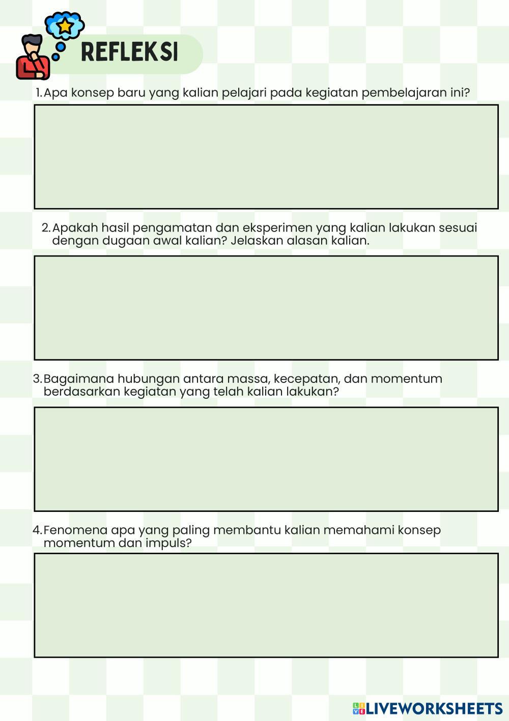 Isilah refleksi dibawah ini!