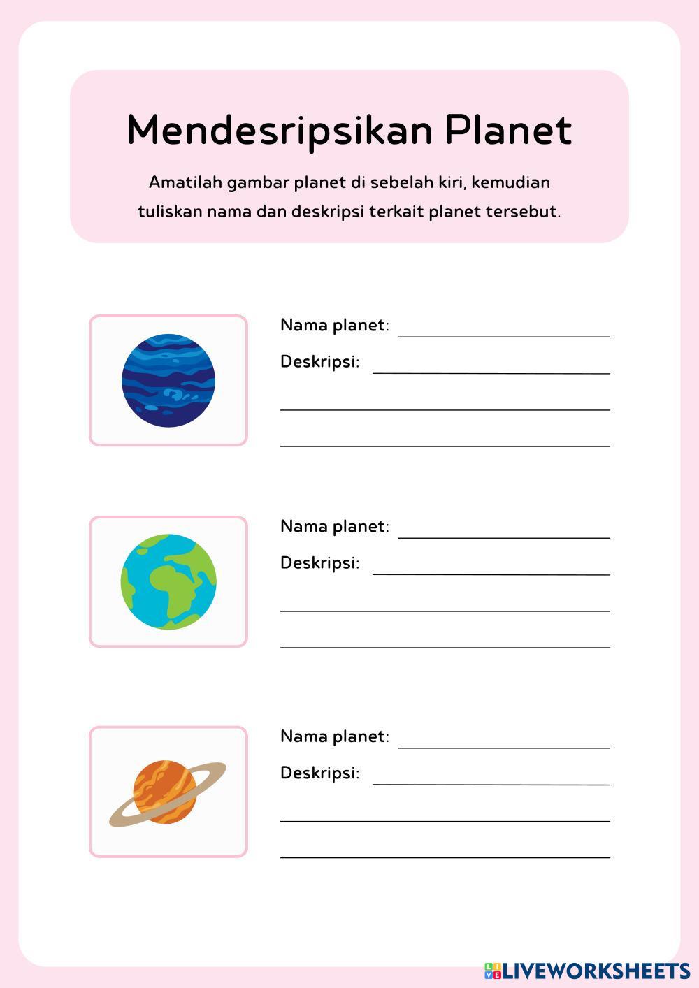 Created byfadilah isnaini rahayu Science Elementary 5th grade Space Science Indonesian Author's Instructions JAWABLAH PERTANYAAN BERIKUT DENGAN BENAR!!! My Google Classroom Courses × 0 classes selected (0 students total) Quick Access Select all classes (0 classes) All Classes Loading courses... Cancel Share Share to selected Course __COURSE_NAME__ __STUDENT_NAME__ (__STUDENT_EMAIL__) LKPD IPA Download Worksheet Validation Check my answers Emails my answers to my teacher Full name Group/level School subject Teacher's email or key code Close Submit Validating worksheet... (12) Your answers have been sent to your teacher. Good luck! OK We encountered an error submitting your answers. Please try again. OK Advertisement | Go Ad Free Created byfadilah isnaini rahayu Science Elementary 5th grade Space Science Indonesian Author's Instructions JAWABLAH PERTANYAAN BERIKUT DENGAN BENAR!!! Explore Worksheets CÂY GIÁ TRỊ Science 5th grade CÂY GIÁ TRỊ Space Science - Science HỌC SINH ĐIỀN KHUYẾT Ghép cột (Thiệp chúc mừng) Science 5th grade Ghép cột (Thiệp chúc mừng) Space Science - Science K5 LOS PLANETAS Science 5th grade LOS PLANETAS Space Science - Science Con todo lo escuchado y visto, intentaremos resolver estos planteamientos Sistem Tata Surya Science 5th grade Sistem Tata Surya Space Science - Science 1. Baca doa sebelum mengerjakan lembar kerja 2. Perhatikan instruksi alur menjawab soal yang dijelaskan oleh guru 3. Isilah jawaban soal dengan teliti dan jujur 4. Pastikan jawaban sudah terisi semua sebelum dikumpulkan 5. Kumpulkan jawaban dengan tertib