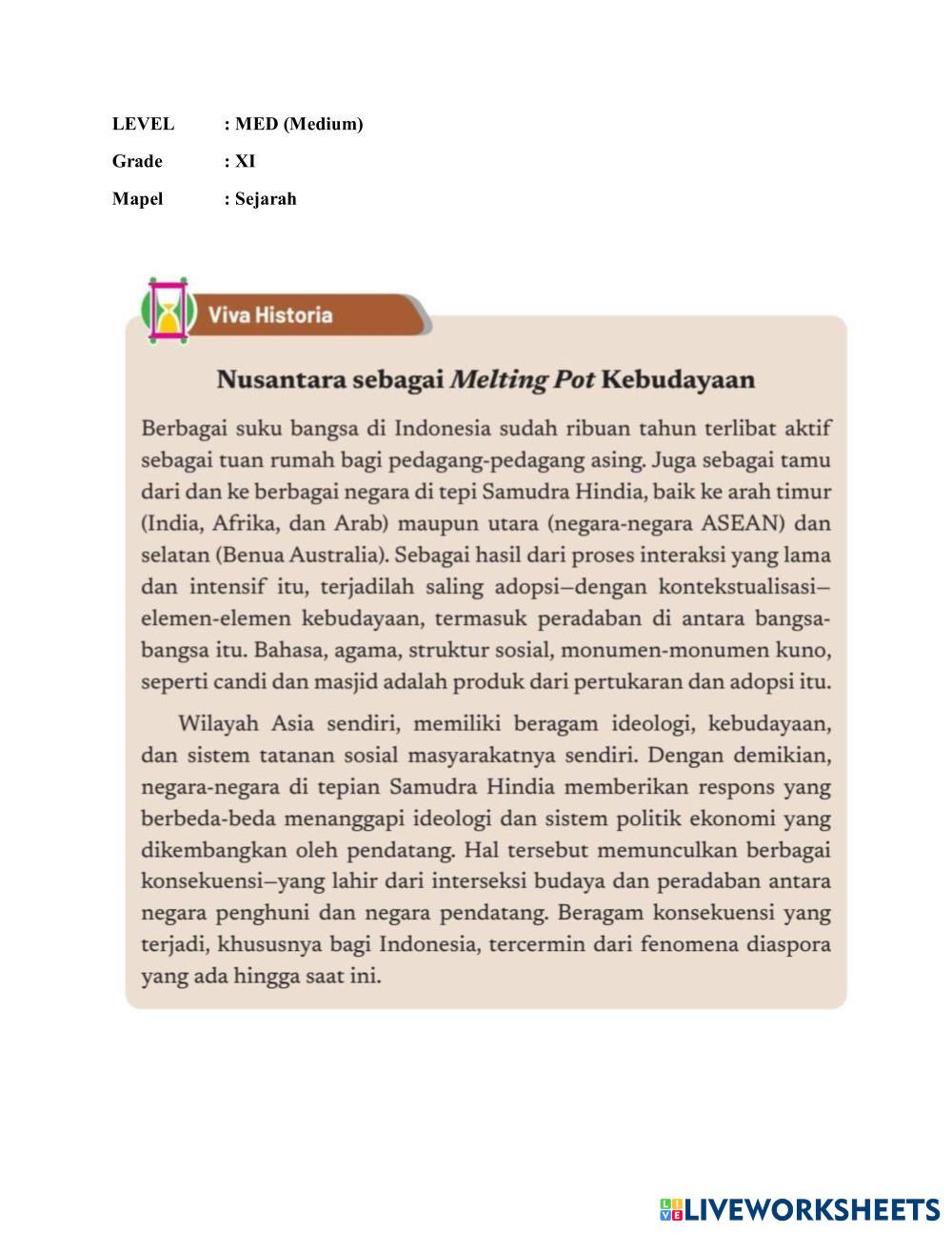 Asesmen berupa soal naratif sejarah dan instruksi pengerjaan tugas.
