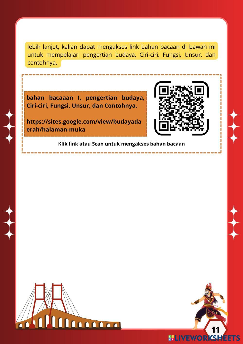 Di lembar kerja ini, kamu tidak hanya akan menjawab pertanyaan, tetapi juga belajar, mengamati, dan bereksplorasi tentang budaya daerahmu. 🌺
